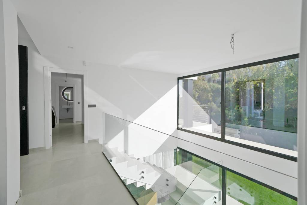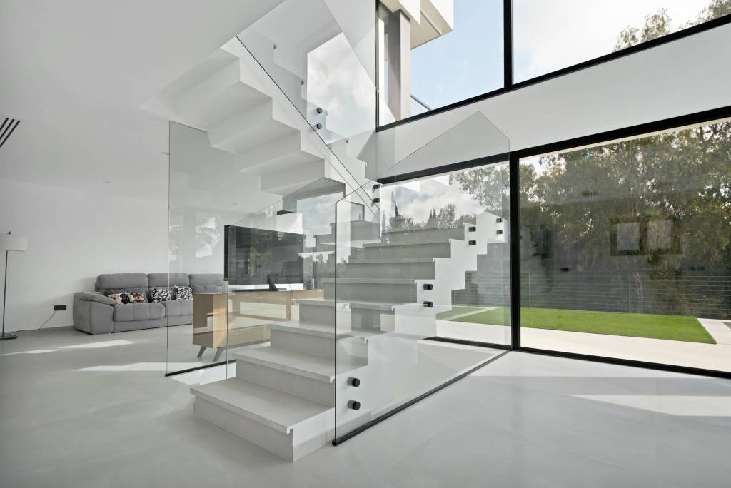 La propiedad se asienta sobre una parcela de 1.118 m² y ofrece 625 m² construidos, diseñados con una arquitectura minimalista elegante en tonos blancos y amplias superficies acristaladas que permiten una perfecta integración entre los espacios interiores y exteriores. La vivienda ha sido concebida para maximizar la luz natural, las vistas abiertas y la sensación de amplitud.