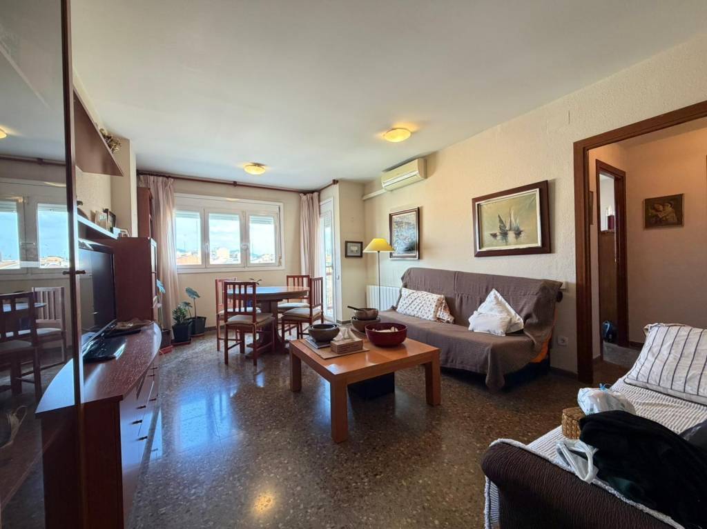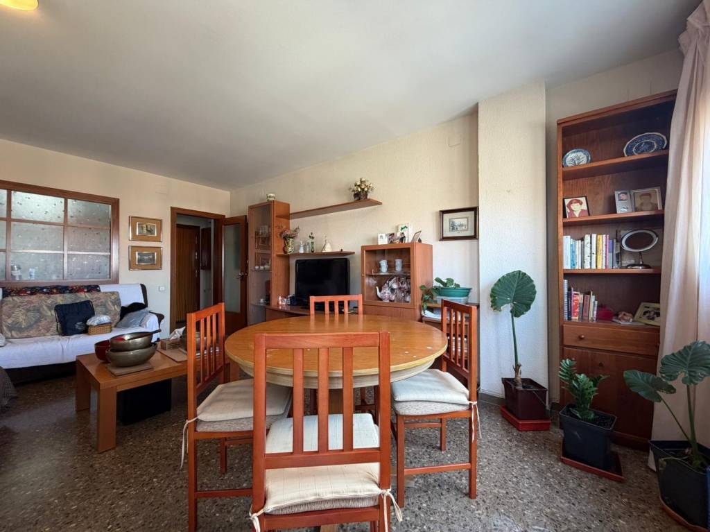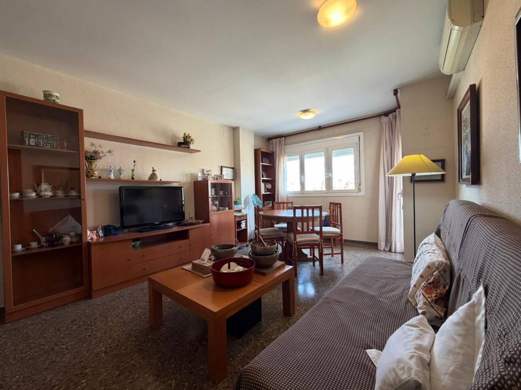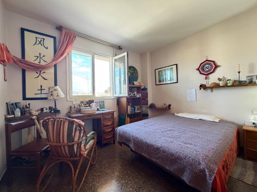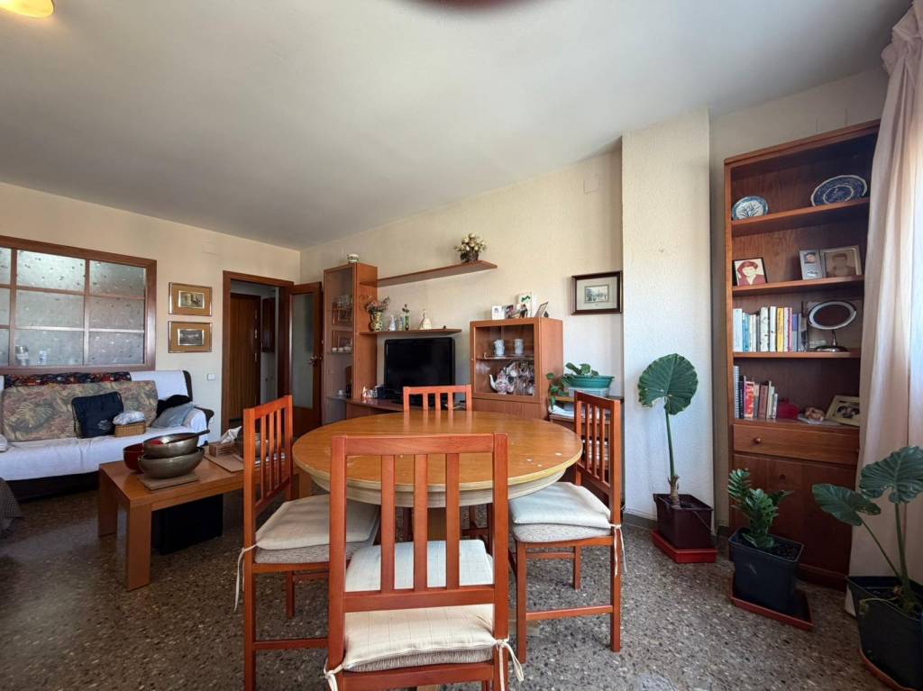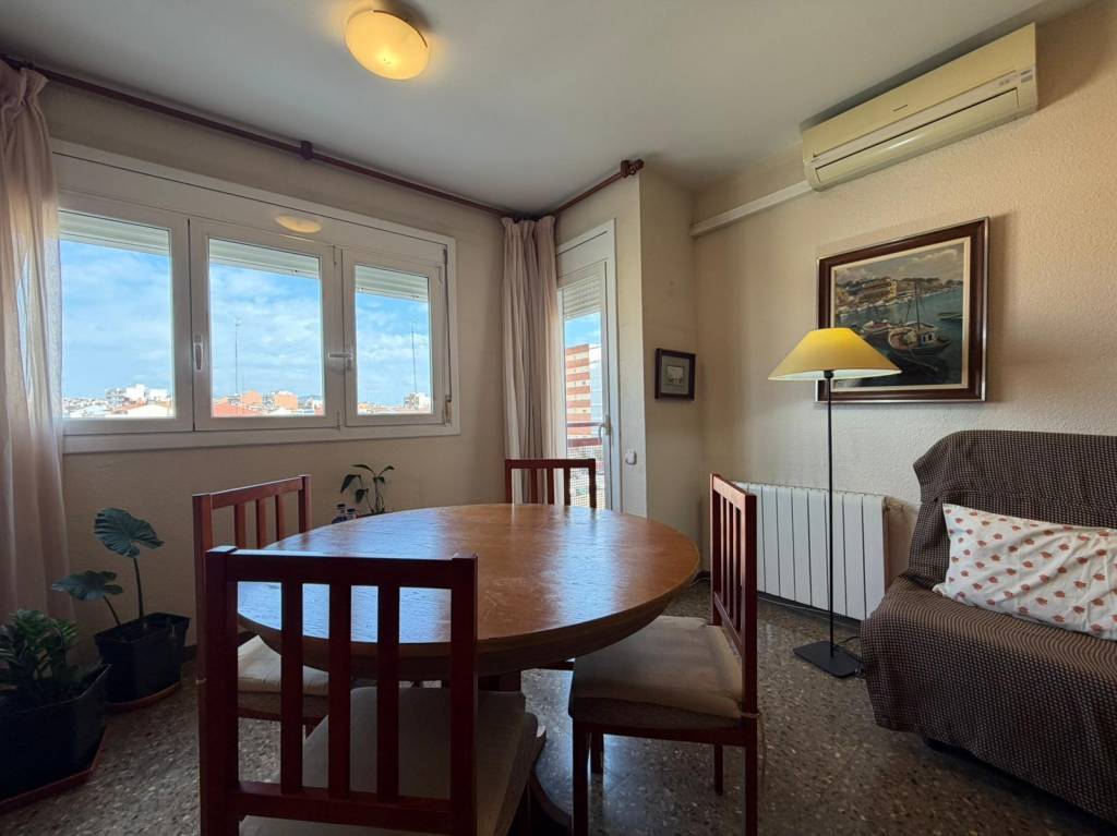 La vivienda se distribuye en 2 habitaciones dobles, ambas con armarios empotrados, un baño completo con ducha, y un amplio salón-comedor de aproximadamente 20 m² con salida directa a un agradable balcón desde el que podrás disfrutar de bonitas vistas a La Mola.