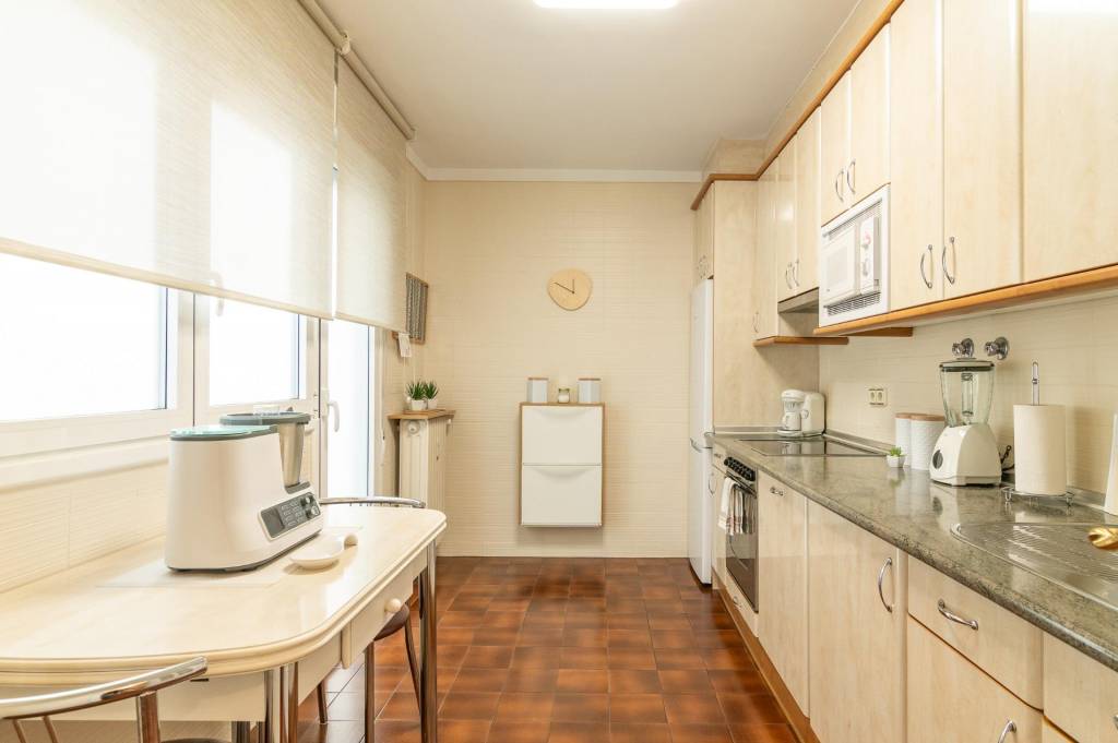 La cocina, amplia y práctica, se convierte en un espacio lleno de posibilidades, con acceso directo a un patio interior de uso privado: ese rincón extra que siempre se agradece, ya sea como zona de desahogo, tendedero o incluso un pequeño oasis personal.