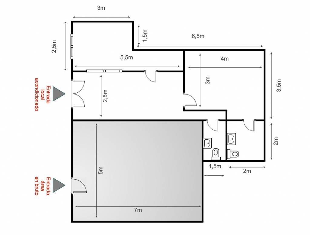 Distribución: 1 Local dividido profesionalmente en 2 espacios funcionales e independientes.