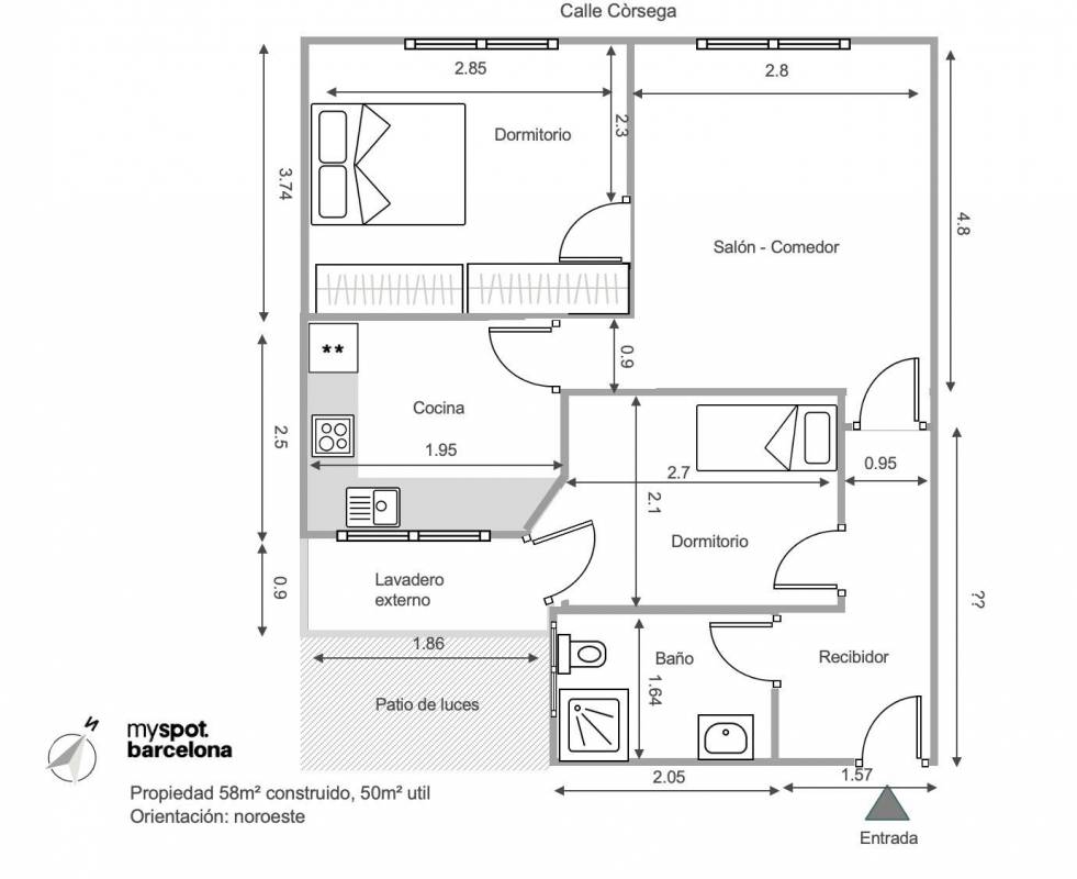 - Construidos: 58m2