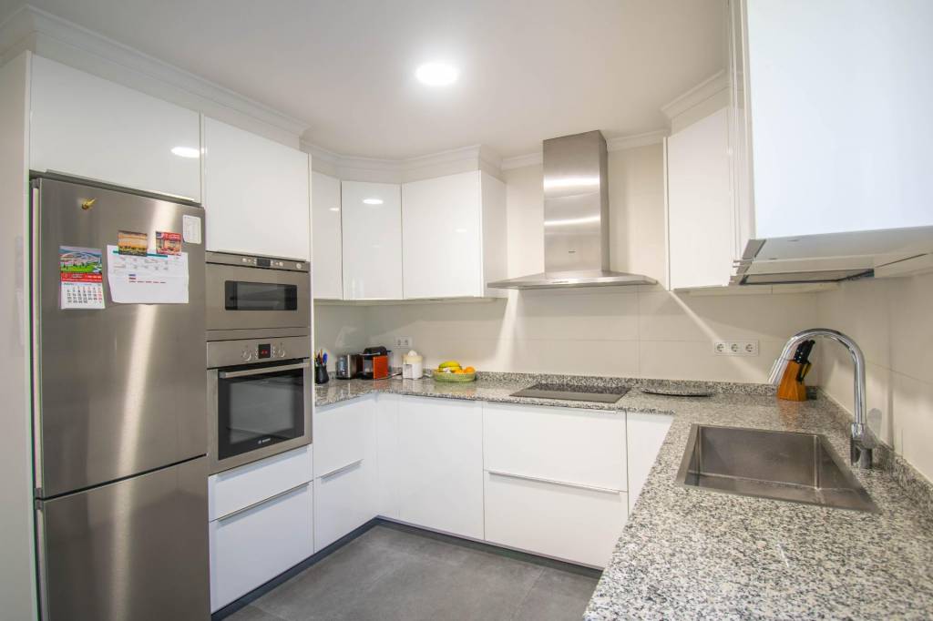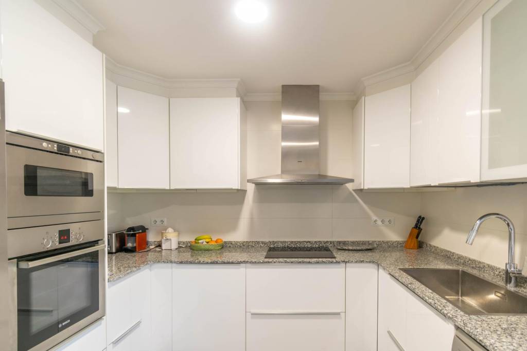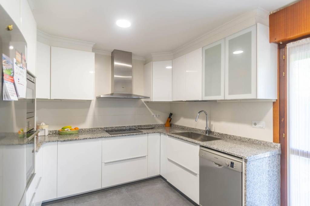 La cocina, reformada, pensada para el día a día, ofrece un espacio funcional y actual, con acceso directo al jardín, lo que facilita la vida cotidiana como la organización de reuniones y celebraciones al aire libre.