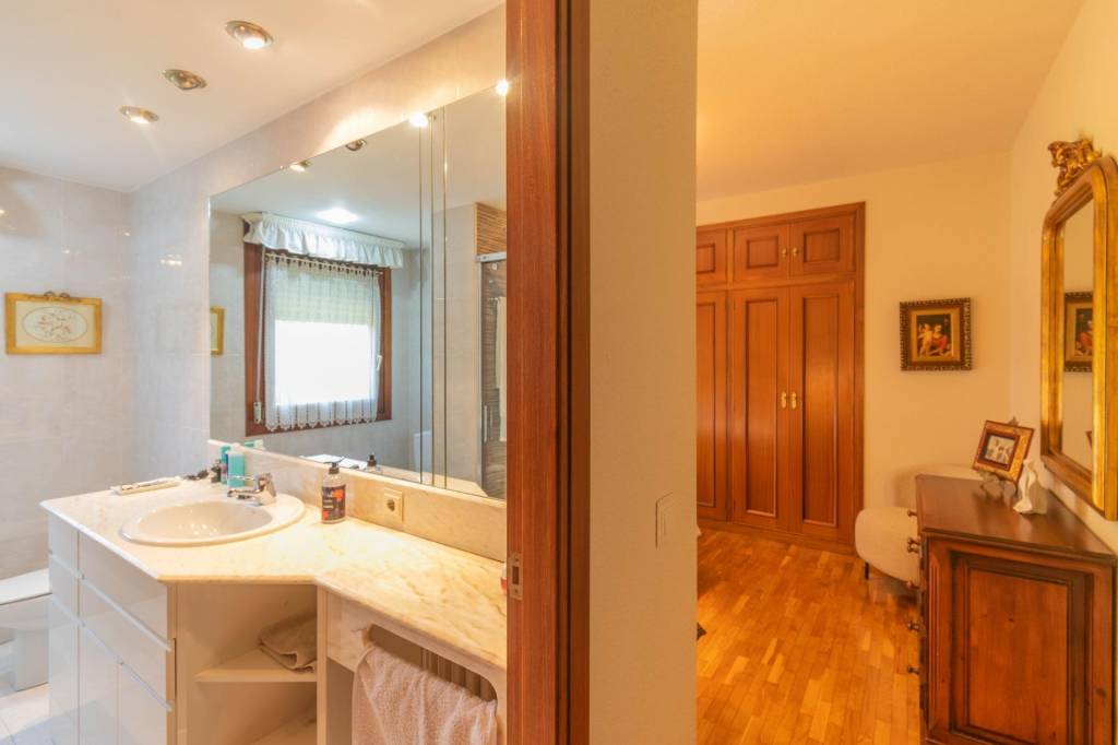 En la planta superior se encuentra la zona de descanso, compuesta por cuatro dormitorios, todos ellos con armarios empotrados, pensados para ofrecer comodidad y espacio a toda la familia. La luz natural vuelve a ser protagonista, creando estancias agradables y acogedoras. Cuenta con un espacioso baño completo con ventana, así como un baño en suite en el dormitorio principal con ducha de obra, también exterior, aportando un plus de confort y privacidad.