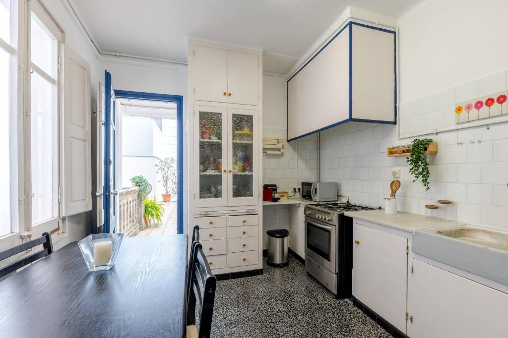 Uno de sus grandes protagonistas es el patio privado a nivel de la cocina, un auténtico privilegio en pleno centro. Un espacio perfecto para desayunos al sol, comidas al aire libre, tardes tranquilas o reuniones con amigos. Ese rincón exterior que convierte una casa en hogar.