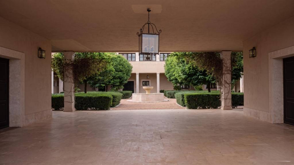 Uno de los grandes atractivos de esta residencia es su elegante patio interior porticado, presidido por una fuente central y rodeado de zonas ajardinadas perfectamente cuidadas, evocando el carácter señorial de las grandes haciendas clásicas. Este espacio se convierte en el auténtico corazón de la vivienda, aportando luminosidad, frescura y una atmósfera serena y distinguida. A ello se suman las impresionantes vistas panorámicas abiertas que ofrece la finca, especialmente al atardecer, cuando el paisaje manchego despliega toda su belleza y convierte cada estancia en un auténtico mirador privilegiado sobre la naturaleza.