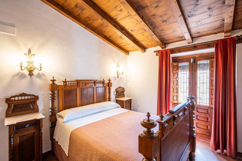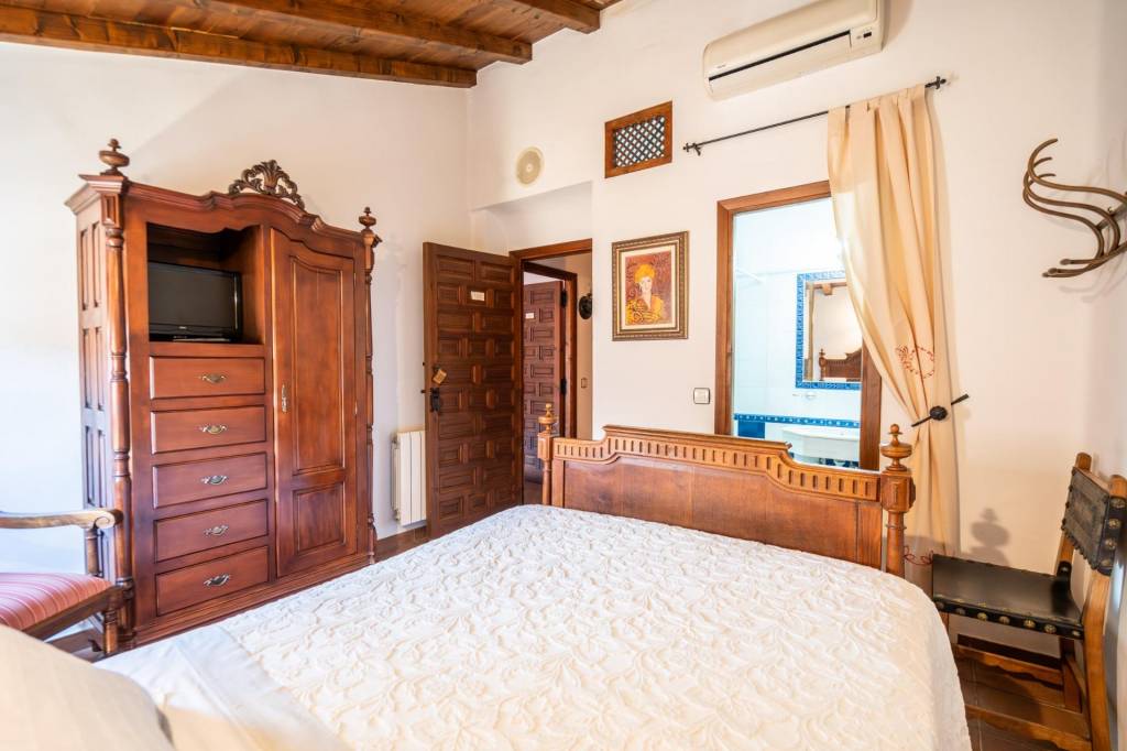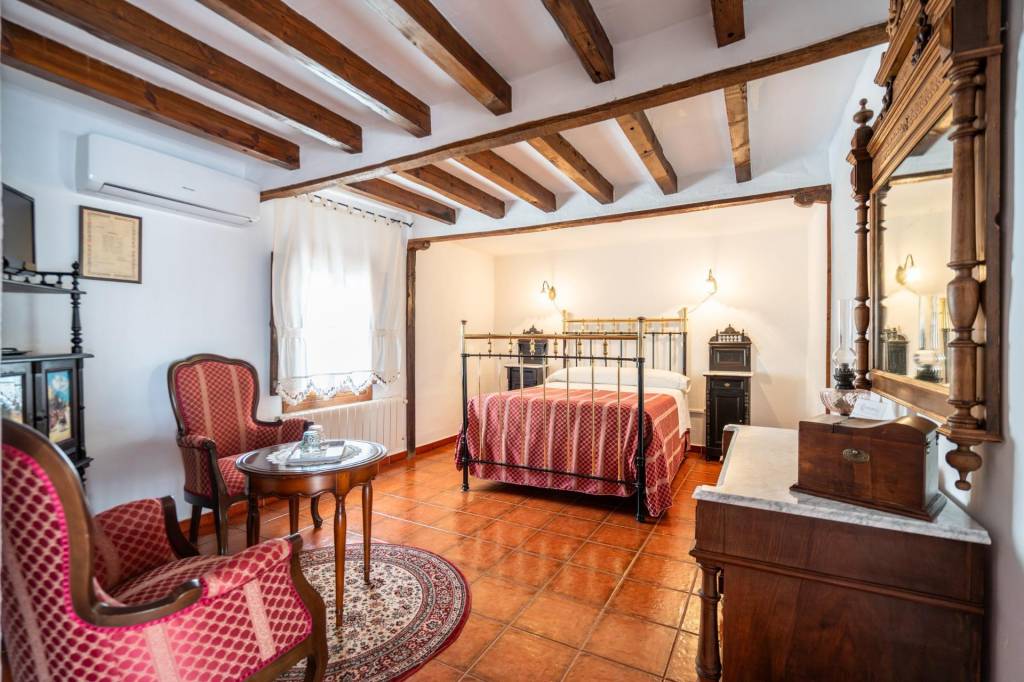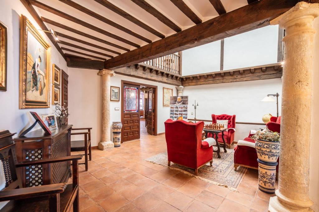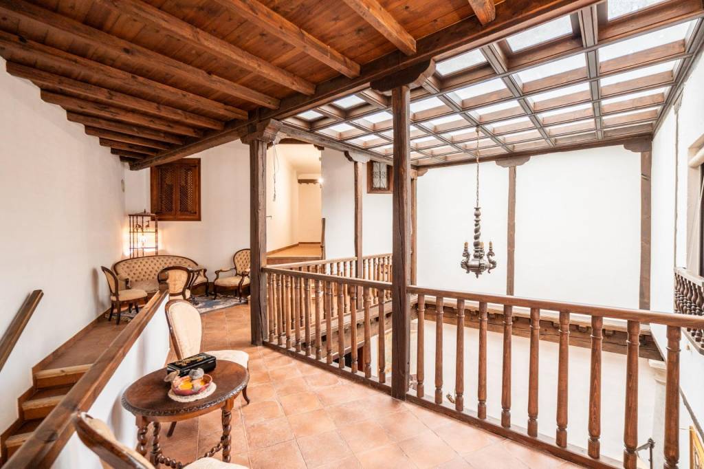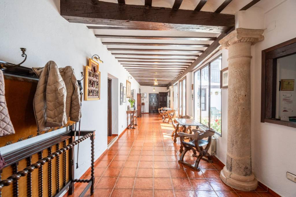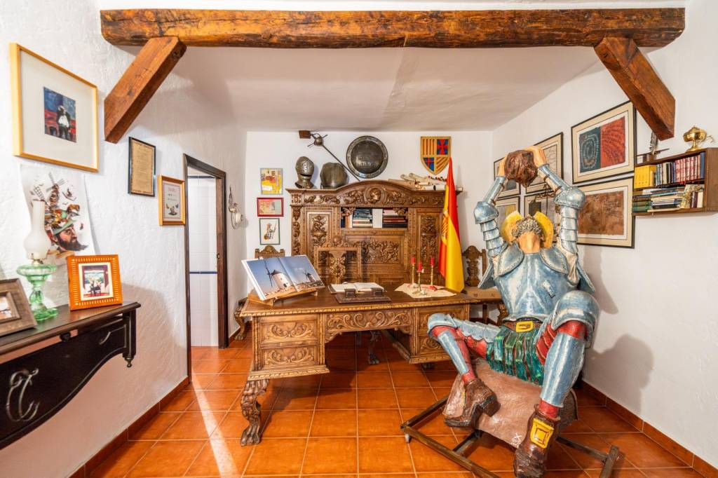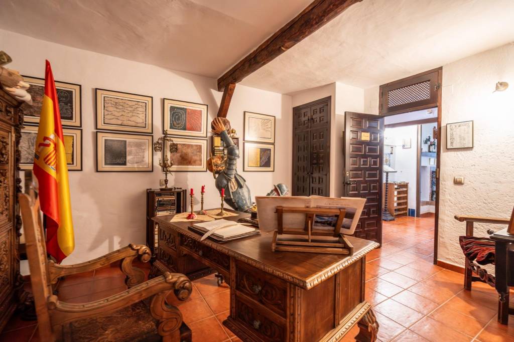 En su interior, la propiedad conserva un marcado estilo temático inspirado en la época de Cervantes, con decoración tradicional, muebles antiguos y espacios llenos de autenticidad.