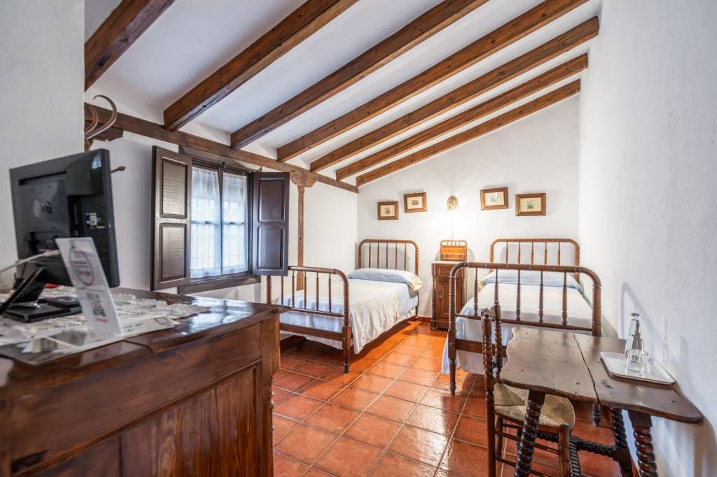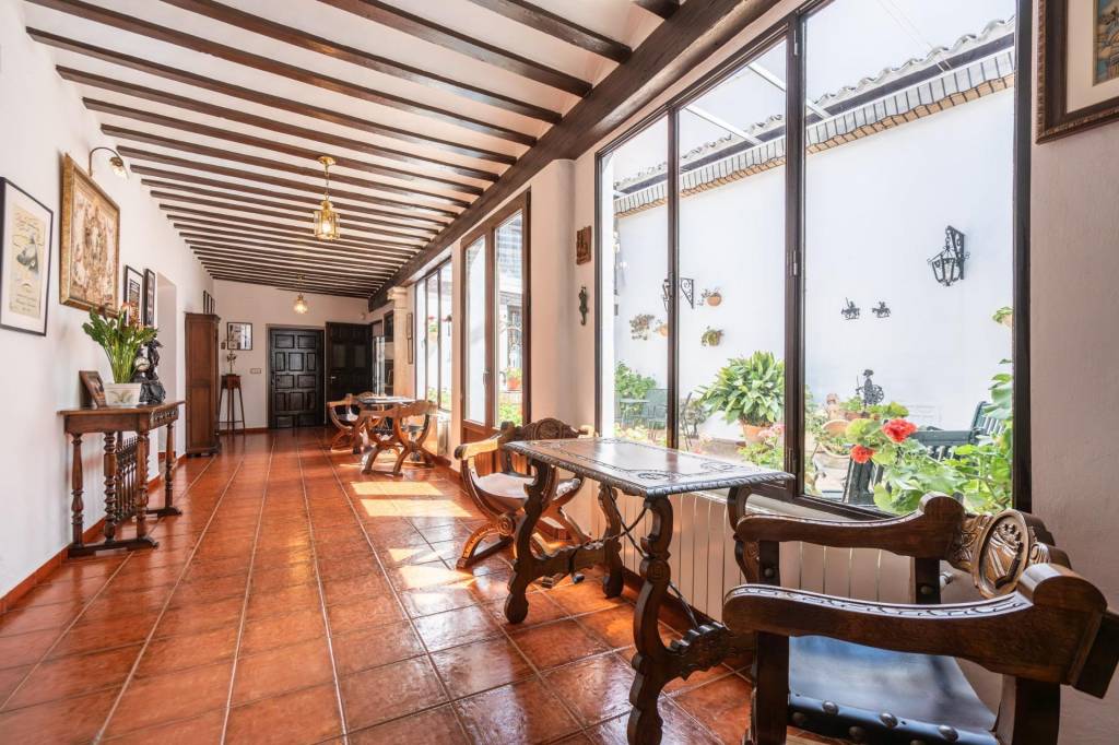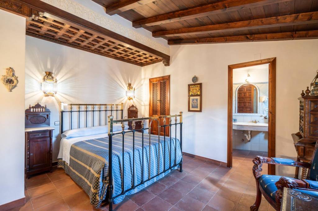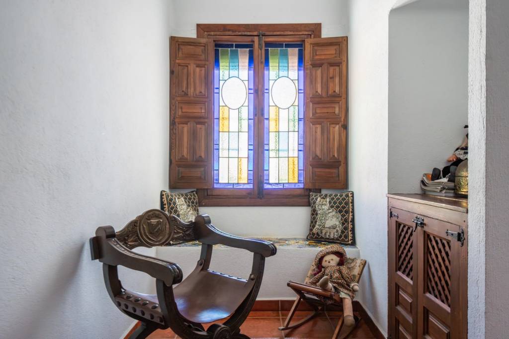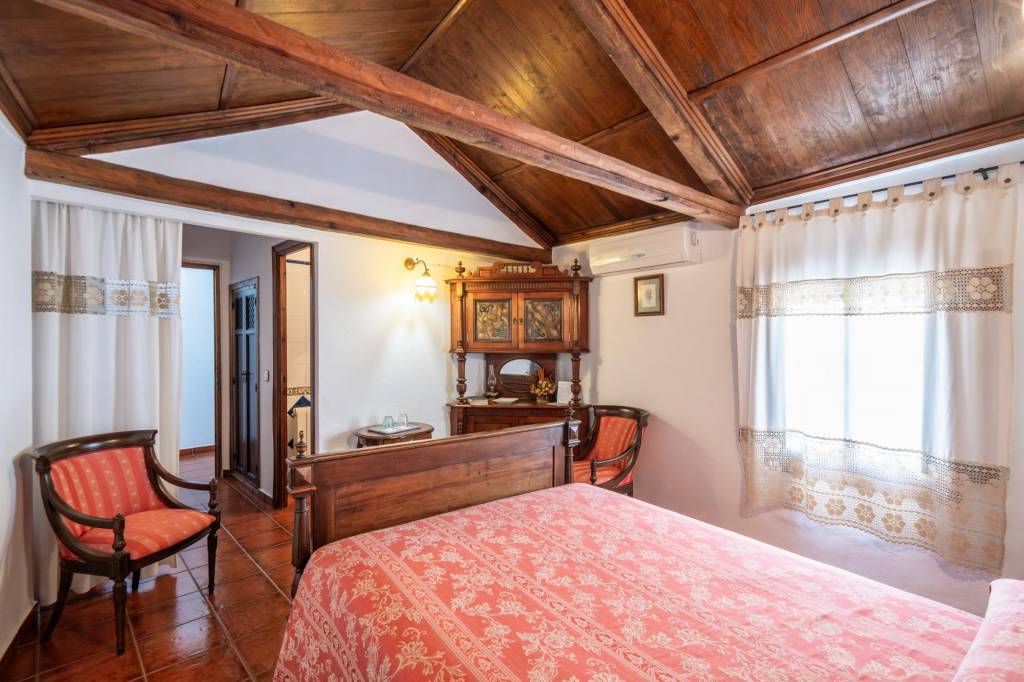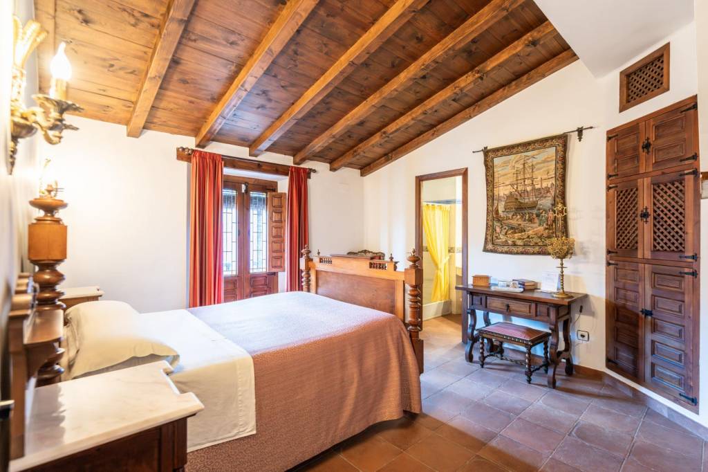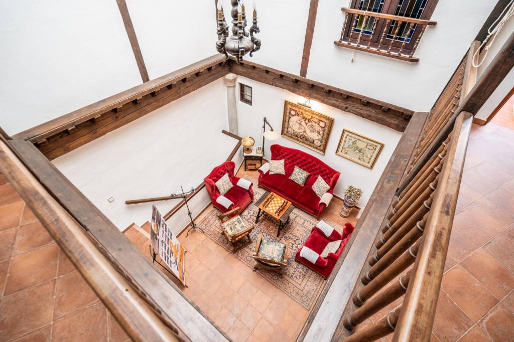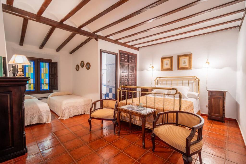 En su interior, la propiedad conserva un marcado estilo temático inspirado en la época de Cervantes, con decoración tradicional, muebles antiguos y espacios llenos de autenticidad.