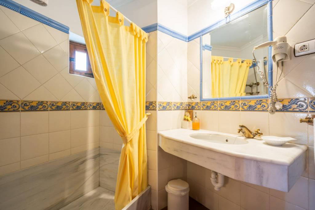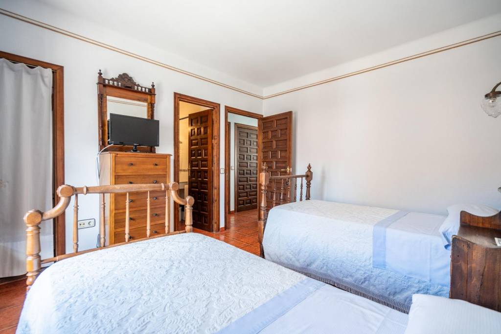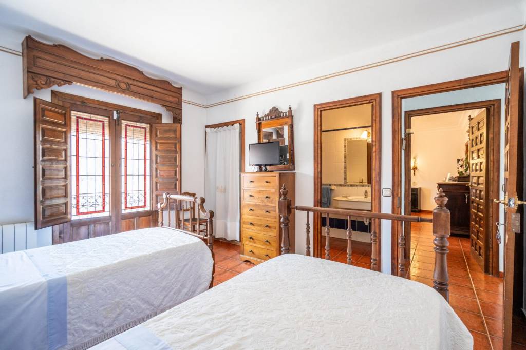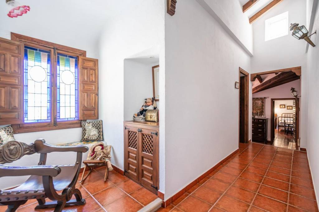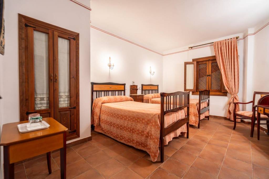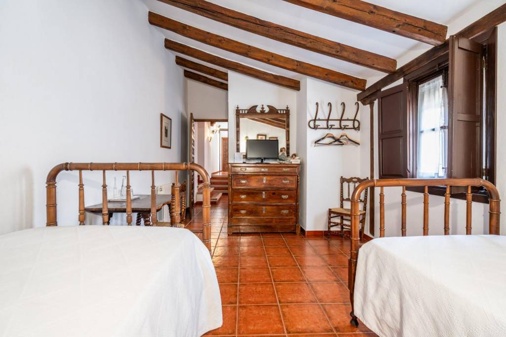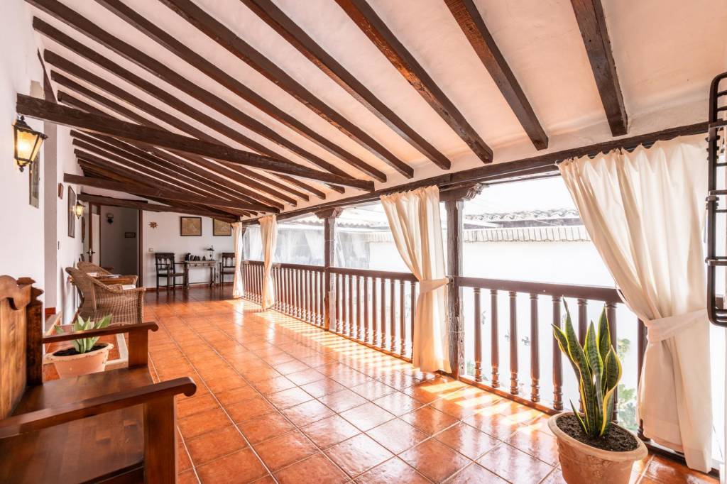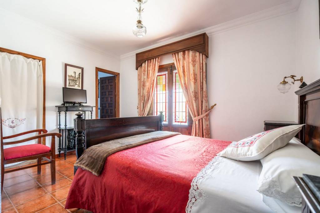 En su interior, la propiedad conserva un marcado estilo temático inspirado en la época de Cervantes, con decoración tradicional, muebles antiguos y espacios llenos de autenticidad.