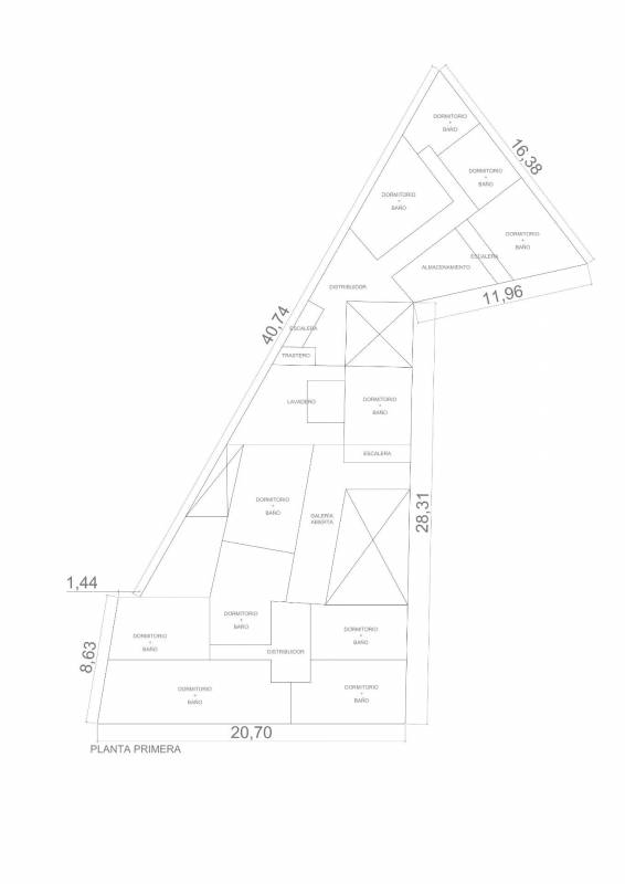 La edificación cuenta con planta baja, dos plantas superiores y una planta sótano dividida en dos espacios, en uno de los cuales se ubica el antiguo pozo de la casa. La superficie construida total asciende actualmente a 1.016,48 m². Además, dispone de varias zonas exteriores y terrazas que aportan amplitud, luz y múltiples posibilidades de uso.