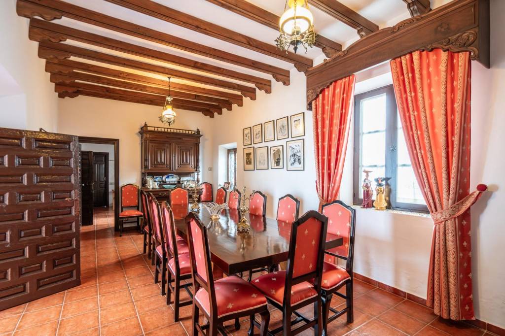 La planta baja cuenta con varios salones, uno de ellos con chimenea, biblioteca y patio interior, creando espacios cálidos y llenos de personalidad. A ello se suma un restaurante con cocina típica manchega y vinos de la zona, un gran valor añadido para explotar el negocio turístico y gastronómico.
