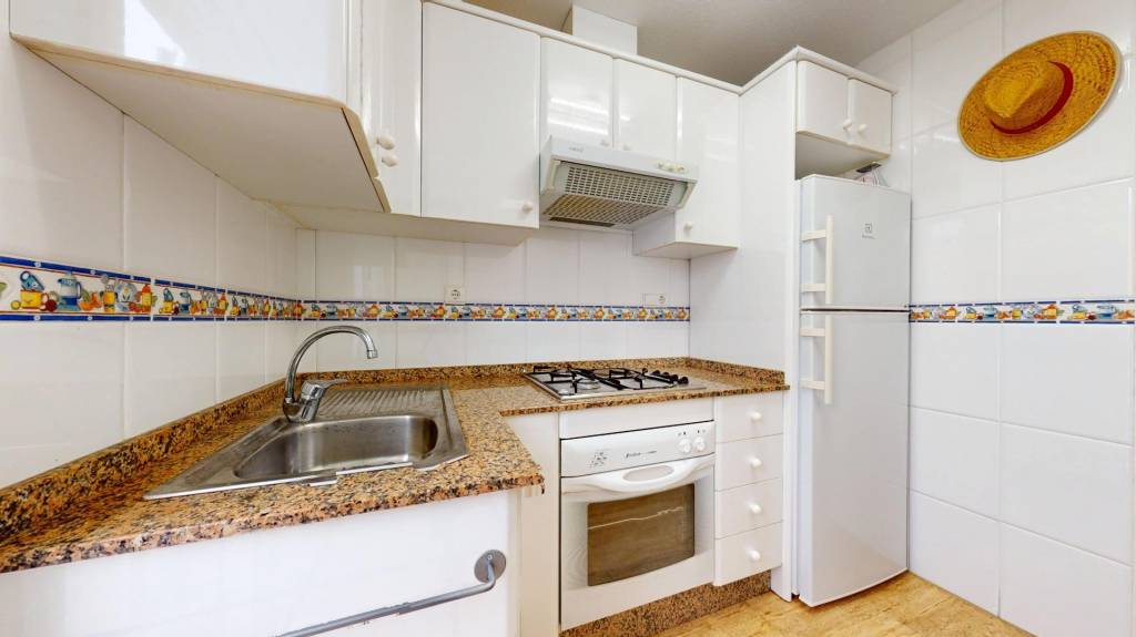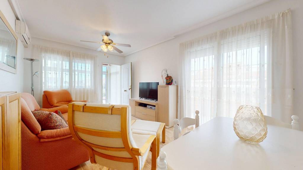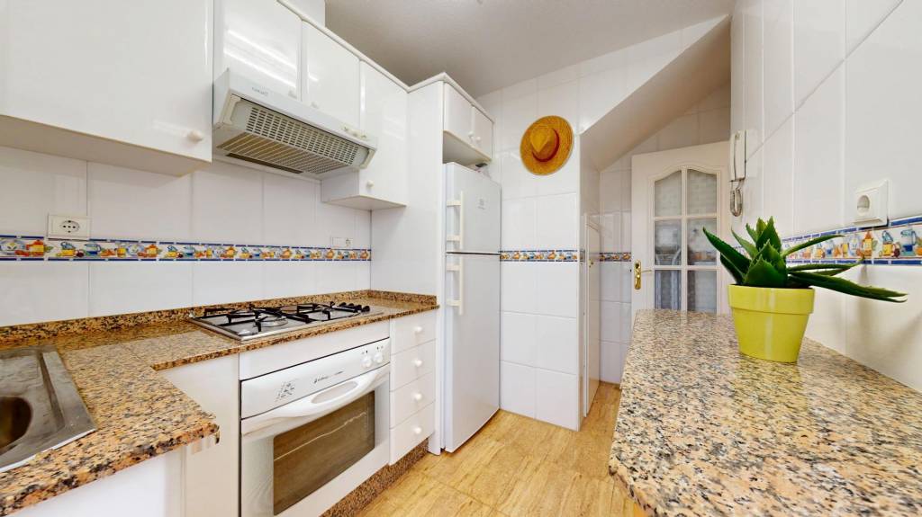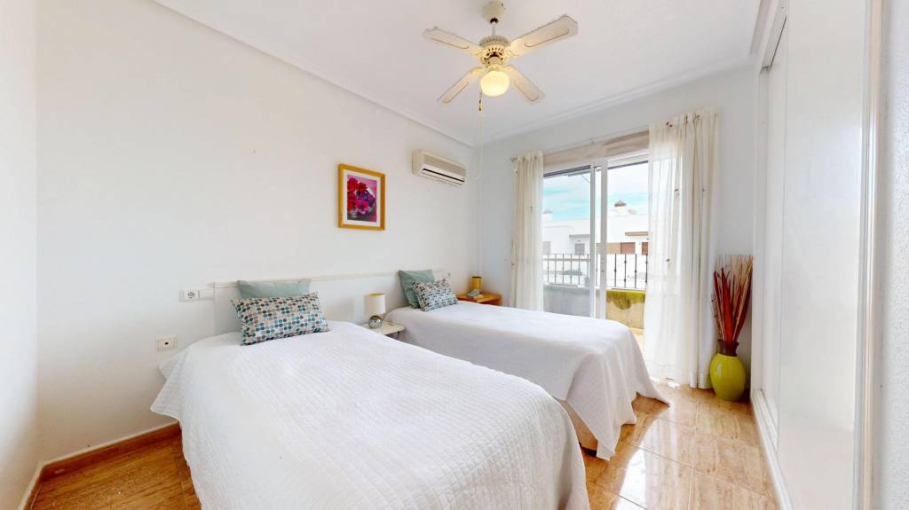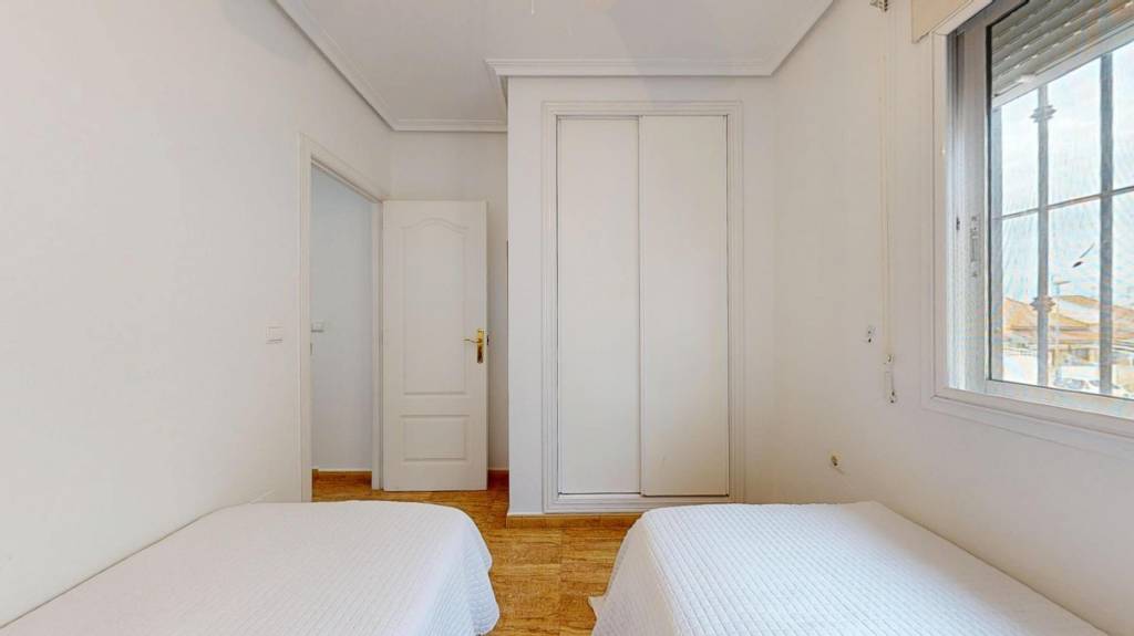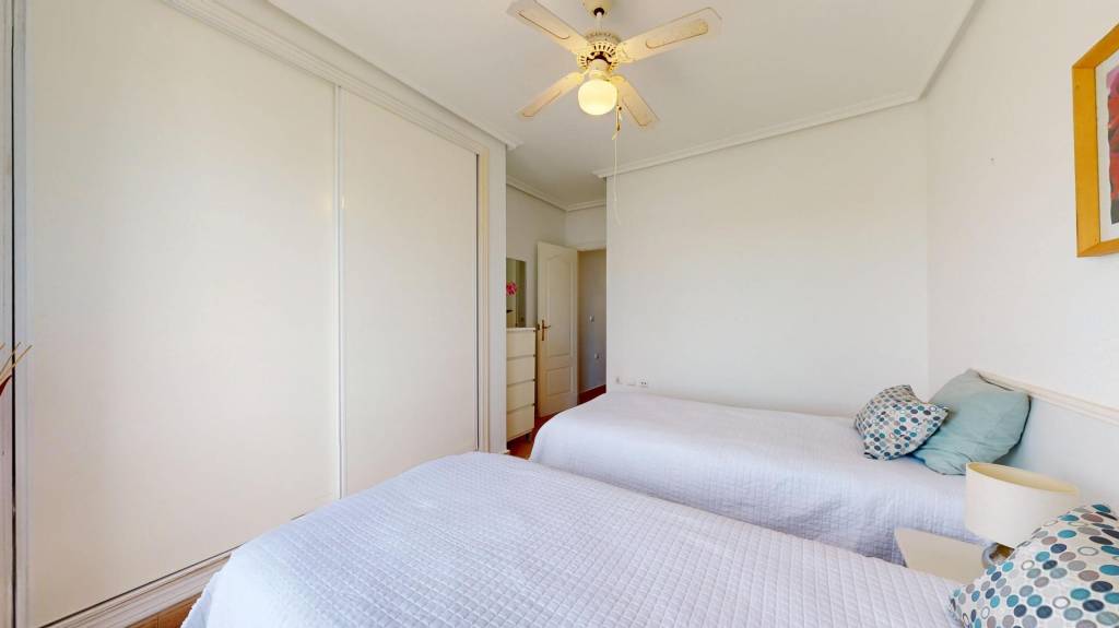 Se trata de un dúplex – esquina con solárium en la última planta, compuesto de dos habitaciones dobles y dos baños, en una de las zonas más tranquilas de San Pedro del Pinatar.