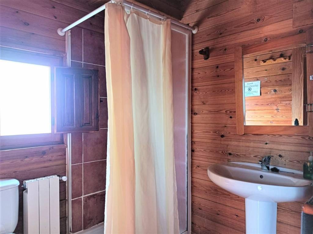 - Tres cabañas de madera con siete plazas autorizadas en cada una de ellas. Las casas de madera se componen de una cocina totalmente amueblada y equipada, sala de estar-comedor y un baño.