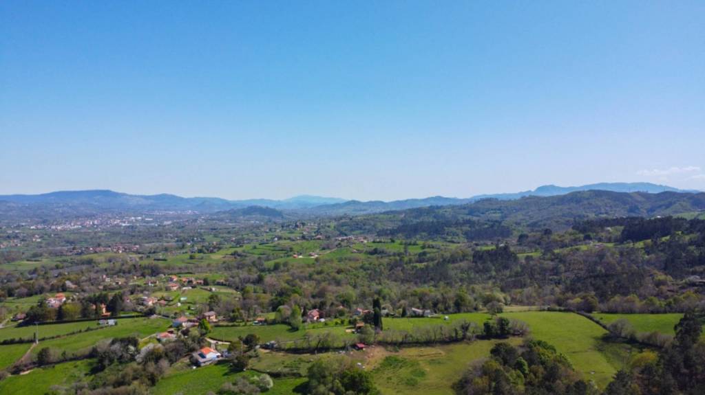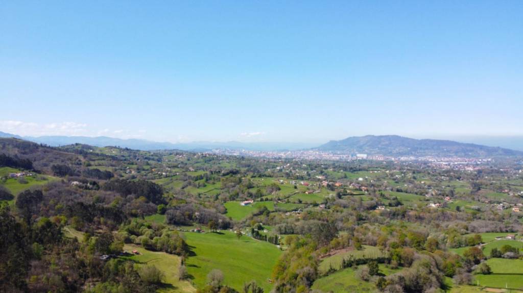 Las vistas son muy despejadas, pudiendo ver el concejo de Siero, e incluso la urbanización de la Fresneda. La casa puede orientarse de cualquier manera ya que es una parcela muy abierta.