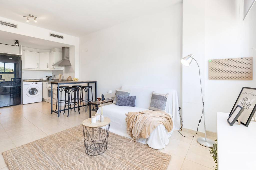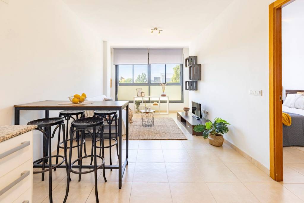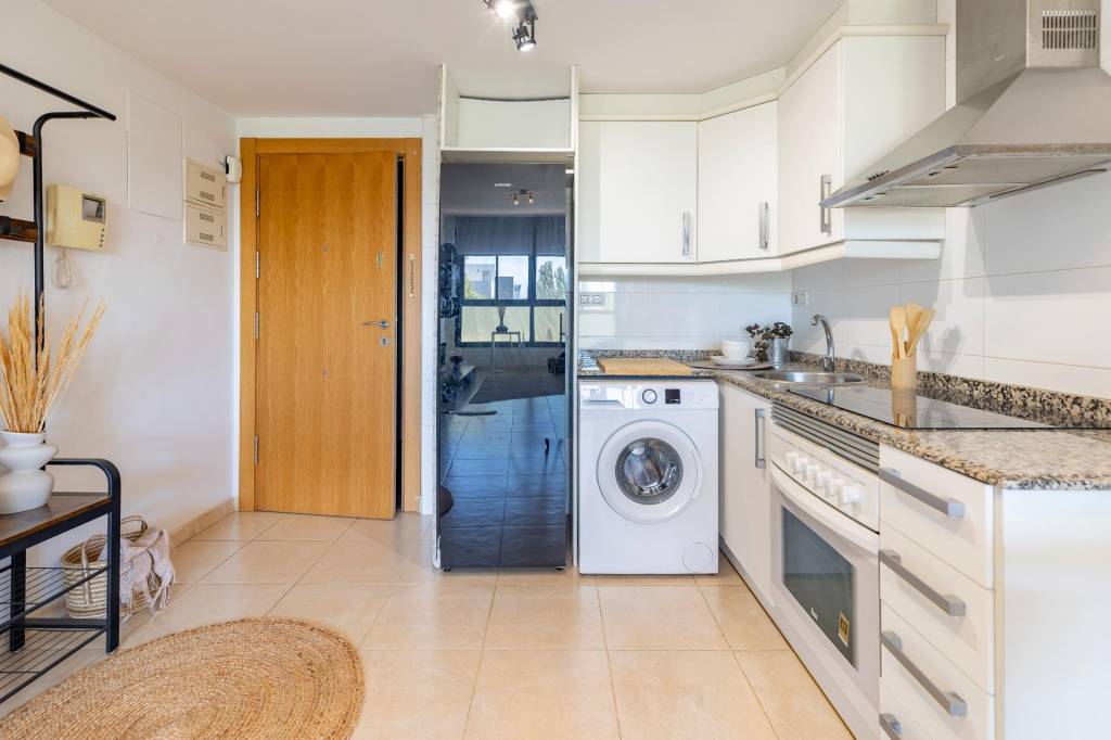 La cocina abierta al salón crea un espacio cálido y moderno, ideal para compartir momentos, cocinar acompañado o simplemente relajarte después de un día de trabajo. Aquí, cada rincón está pensado para aprovechar al máximo la luz y la comodidad.