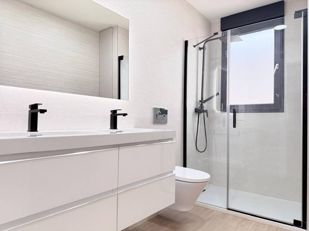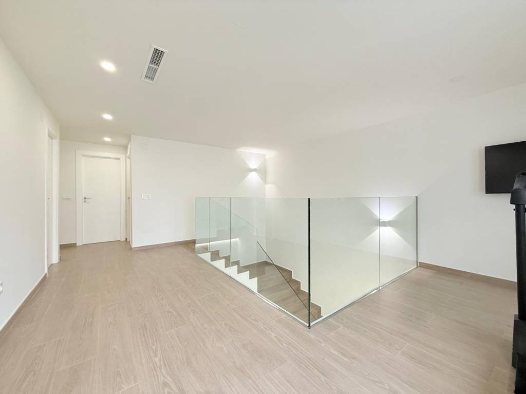 Nada más entrar, el gran salón se convierte en el corazón de la casa: un espacio abierto y elegante donde compartir reuniones familiares o veladas con amigos. La cocina, moderna y con acceso directo al patio, es perfecta para quienes disfrutan cocinando y a la vez quieren mantener la conexión con el exterior. En esta misma planta se encuentra un dormitorio con baño en suite —perfecto para invitados o para quienes valoran la comodidad de tener todo en una sola planta—, además de un aseo de cortesía y un despacho, ideal para teletrabajar sin renunciar al confort del hogar.