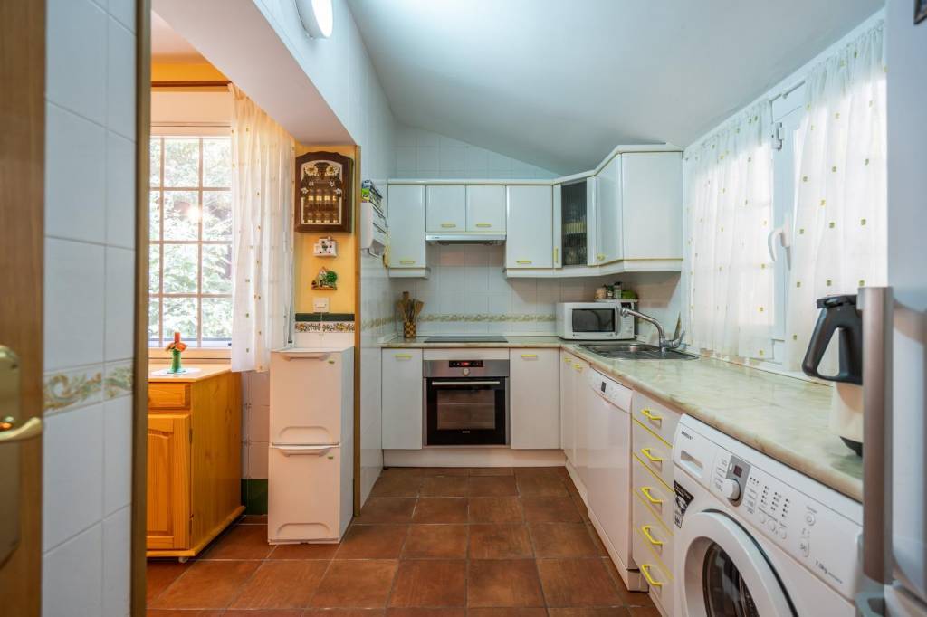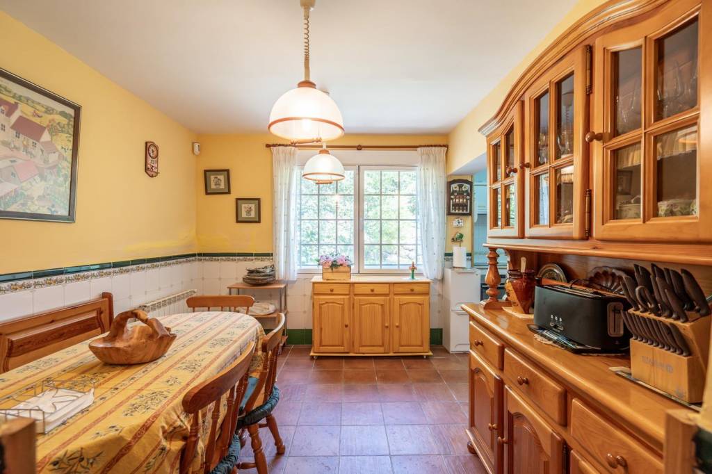 Ofrece un total de cuatro amplios dormitorios, uno de ellos con acceso independiente desde el exterior, y tres baños completos. El salón, con una cálida chimenea, conecta con un comedor lleno de luz natural y una cocina completamente equipada. El espacioso garaje y la bodega subterránea aportan funcionalidad y espacio extra para disfrutar al máximo.