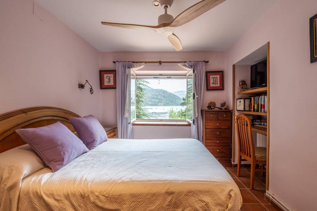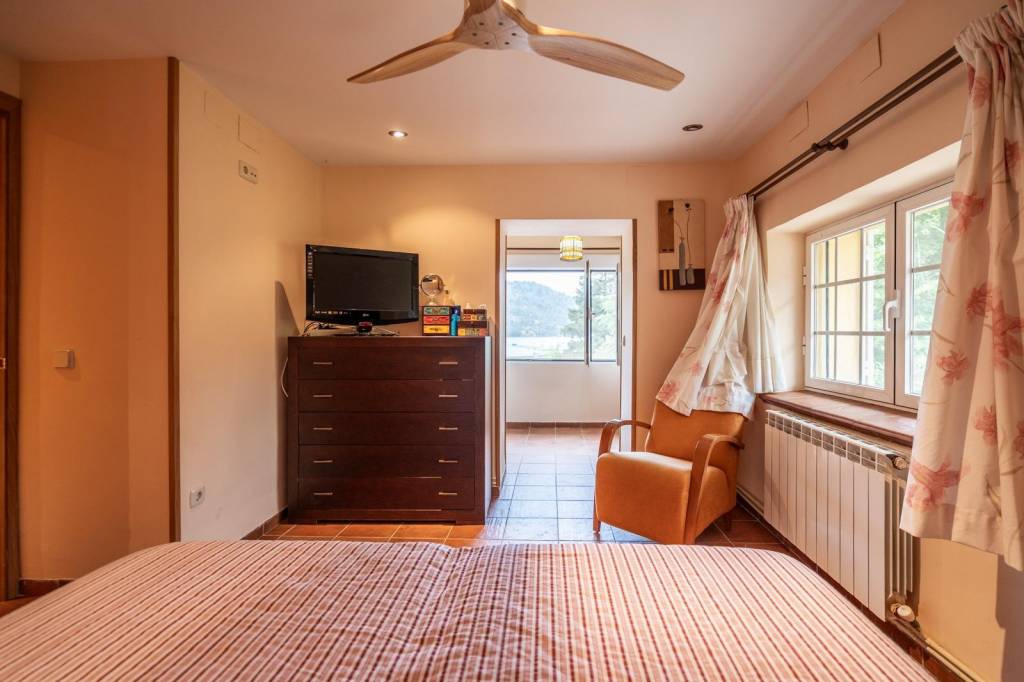 La vivienda dispone de piscina privada con una amplia zona de solárium, un acogedor porche cubierto ideal para cenas al aire libre en verano, zona de barbacoa, gran espacio ajardinado y un huerto. Todo ello con unas vistas inmejorables al pantano, en un entorno tranquilo que invita al descanso. Un verdadero oasis donde cada rincón te sorprenderá.