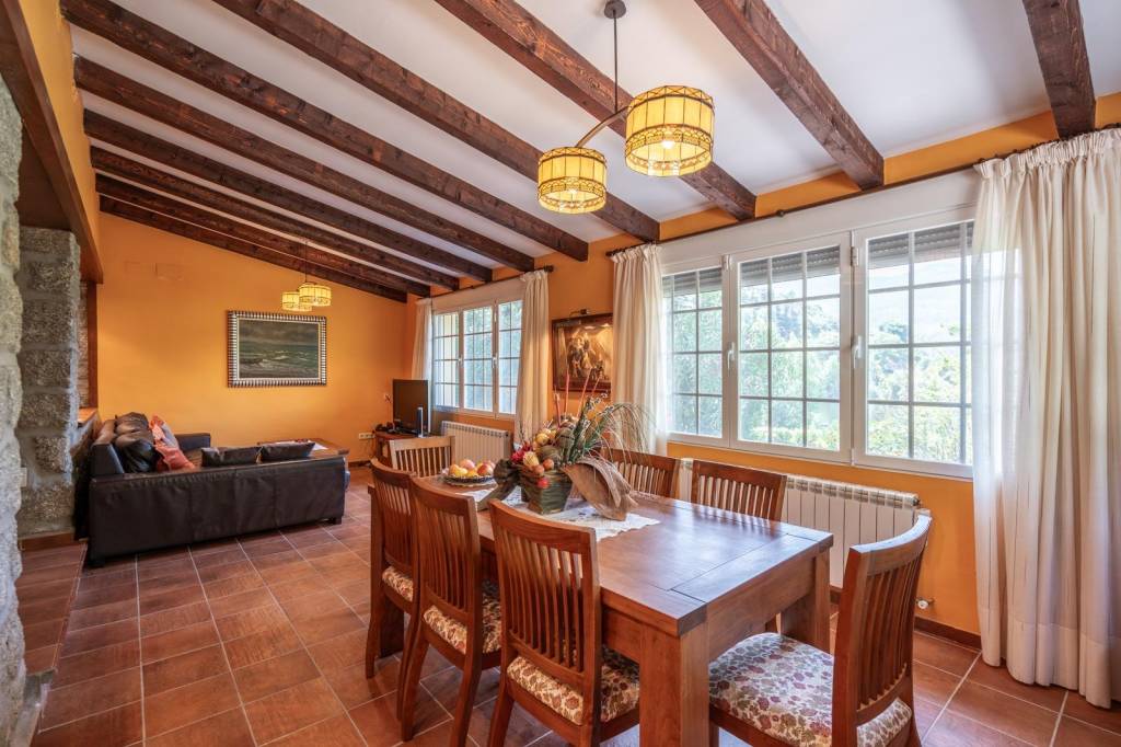 Rodeado de pinos y vegetación exuberante, este chalet transmite calma, privacidad y bienestar. Cuenta con calefacción por gasoil y suministro de agua corriente en toda la parcela, lo que garantiza comodidad durante todo el año.