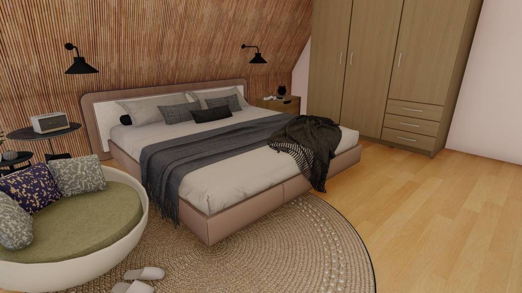 En la planta superior, la casa te regala otra habitación doble con vistas inigualables a la montaña. Un espacio perfecto para descansar mientras disfrutas de la belleza y la serenidad del entorno natural.