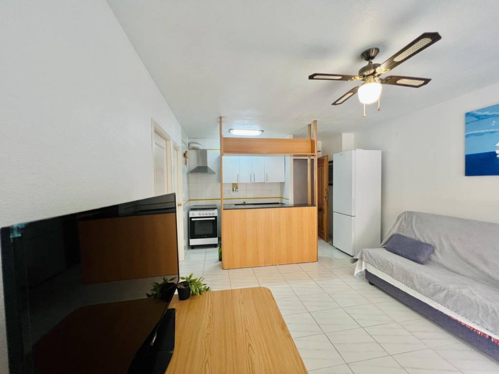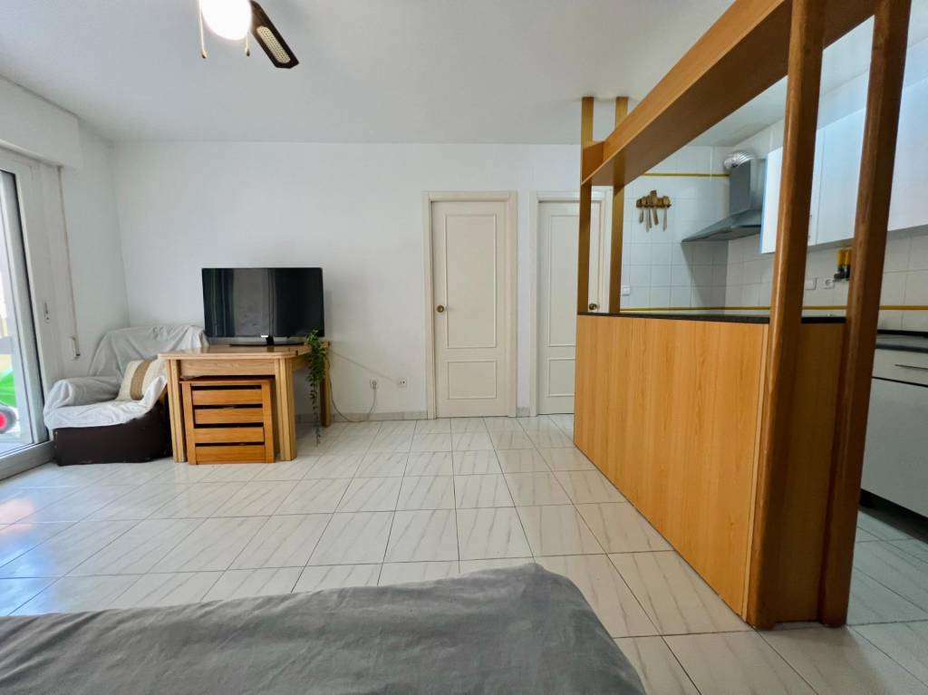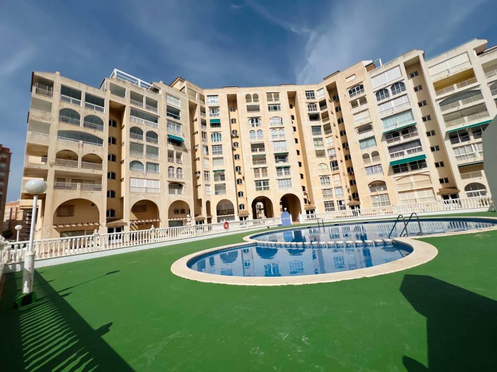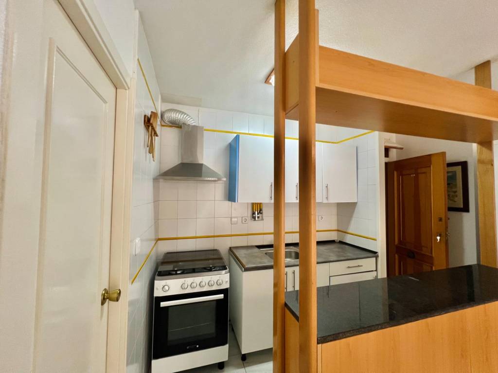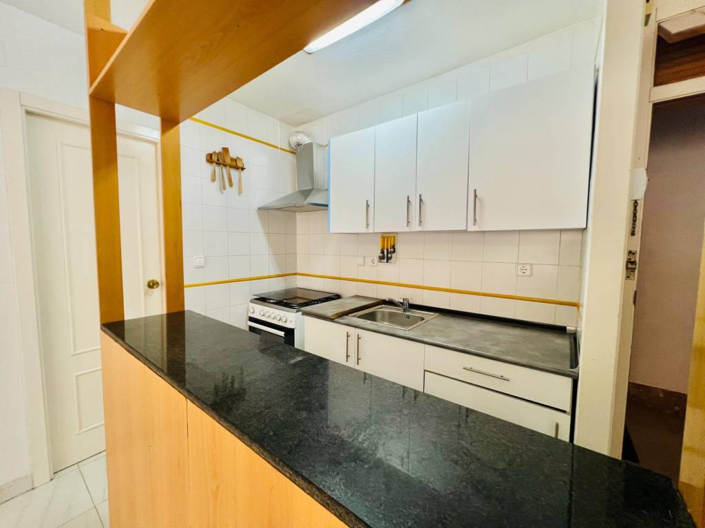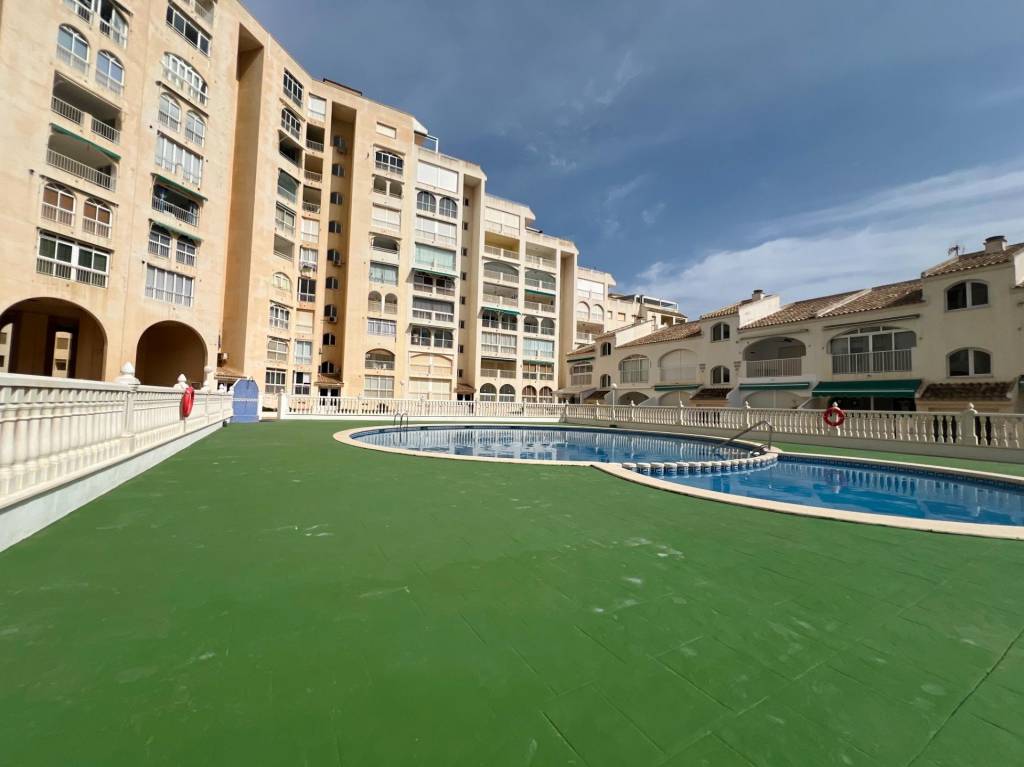 Salón-cocina lleno de luz natural, ideal para momentos de relajación o entretenimiento. Una refrescante piscina comunitaria, perfecta para los días cálidos.