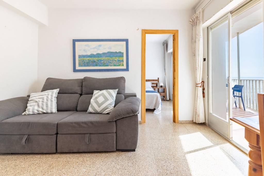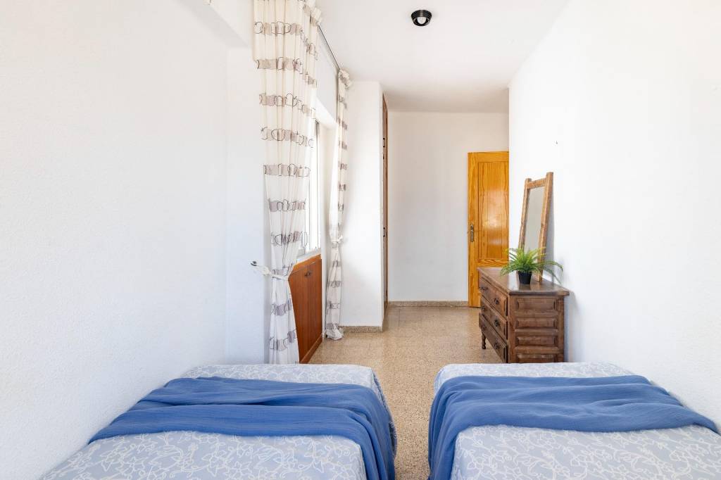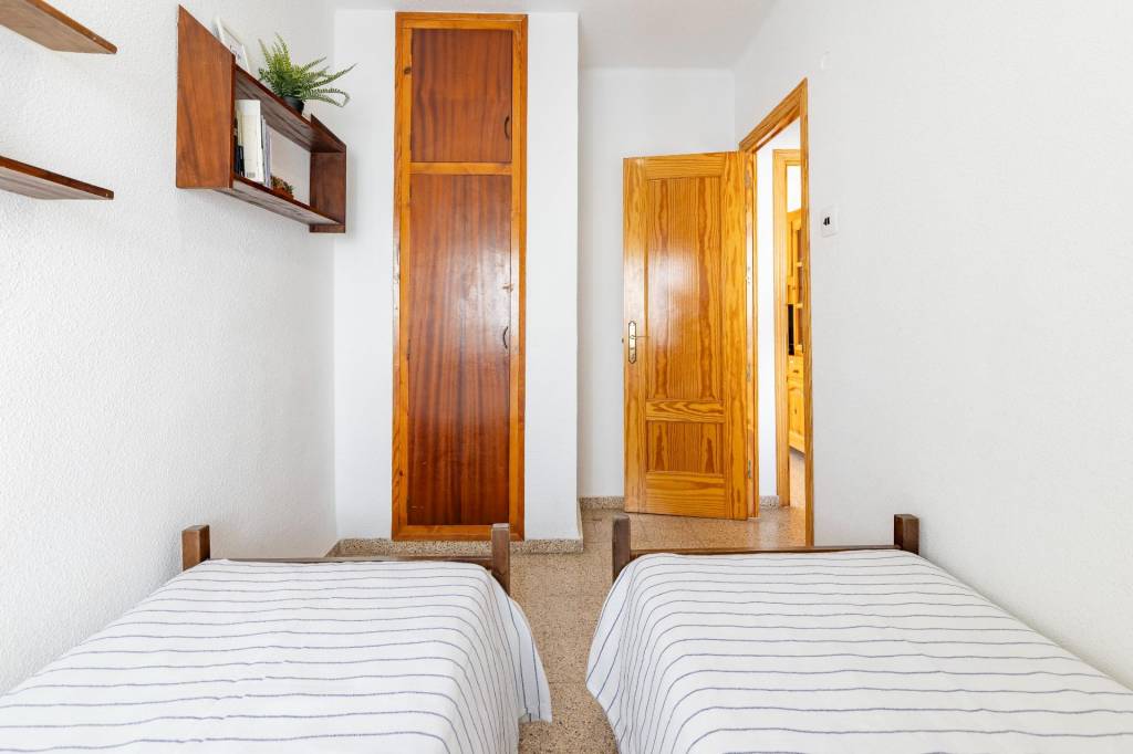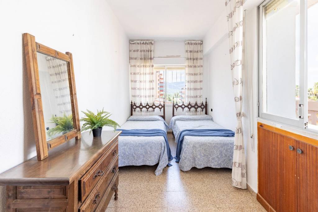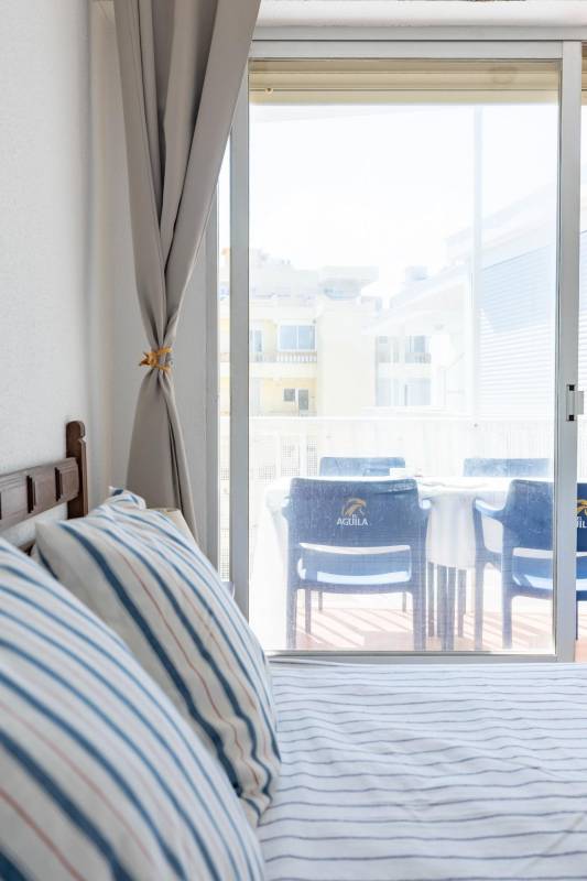 Desde la misma terraza se accede también a la habitación principal, una estancia doble con armario empotrado y unas vistas espectaculares al Mediterráneo. Gracias a su orientación y a la ventilación cruzada, la vivienda goza de luz natural durante todo el día y una sensación de frescor incluso en verano.