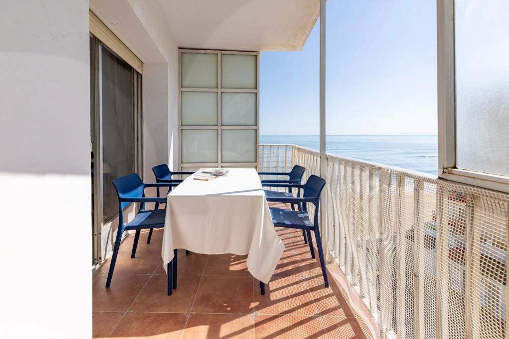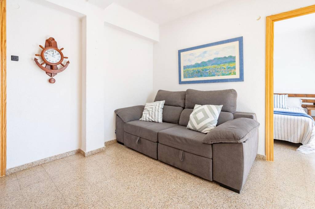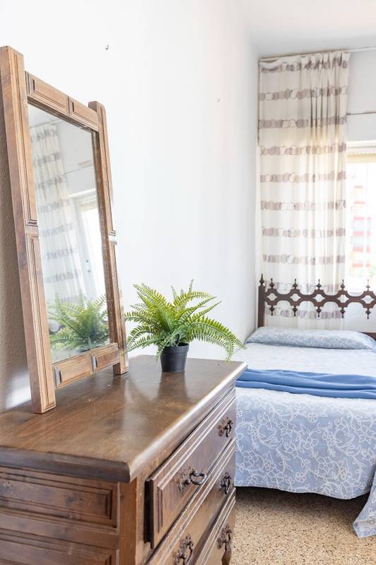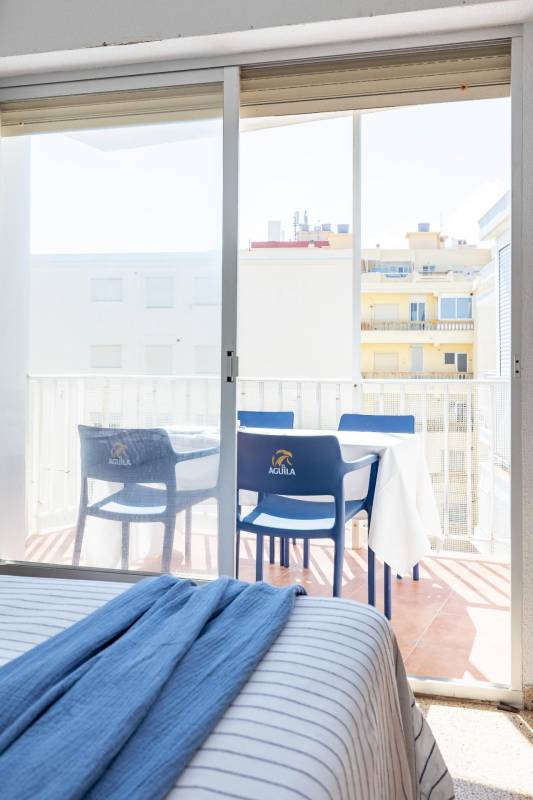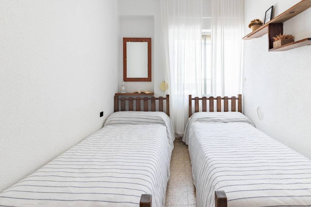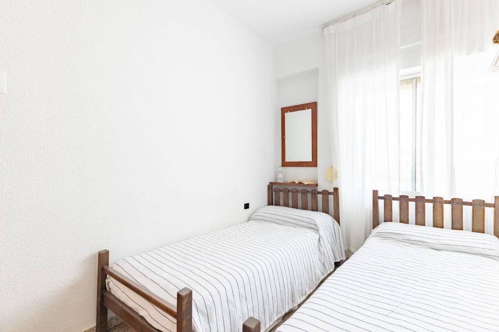 Desde la misma terraza se accede también a la habitación principal, una estancia doble con armario empotrado y unas vistas espectaculares al Mediterráneo. Gracias a su orientación y a la ventilación cruzada, la vivienda goza de luz natural durante todo el día y una sensación de frescor incluso en verano.