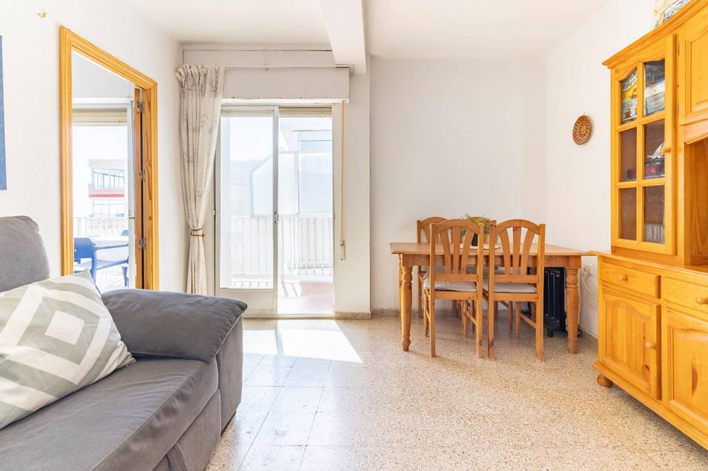 Al acceder a la vivienda nos recibe un baño completo con ducha, seguido de dos dormitorios individuales y una cocina independiente con espacio para personalizarla al gusto. El salón-comedor es amplio y luminoso ya que tiene salida directa a la terraza con vistas directas al mar.
