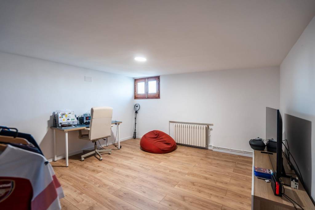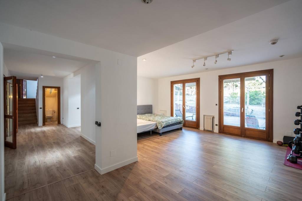 La planta baja, diáfana y luminosa gracias a sus ventanales al jardín, ofrece una versátil zona de estar o de ocio, ideal como salón de verano, con la posibilidad de incorporar un baño completo. Dispone además de dos dormitorios (uno de ellos de grandes dimensiones, perfecto para gimnasio, sala de juegos o suite de invitados), un baño completo y un aseo.