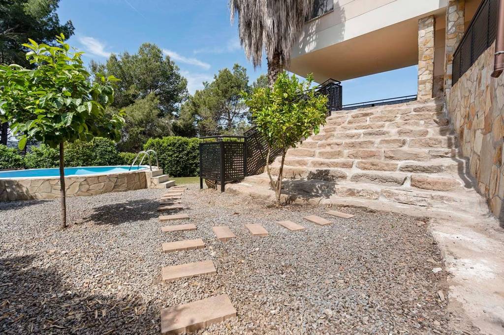La planta principal de la vivienda cuenta de un amplio salón-comedor de doble altura, una cocina office, lavadero/despensa y un baño completo. Tanto el salón, como la cocina, tienen acceso al exterior, donde a nivel de planta hay un porche de 45 m2, perfecto para disfrutar en los días más calurosos junto a la piscina. La planta de noche se compone de 2 habitaciones dobles, una suite con baño completo, otro baño y un rincón con terraza ideal como espacio para lectura o su afición.