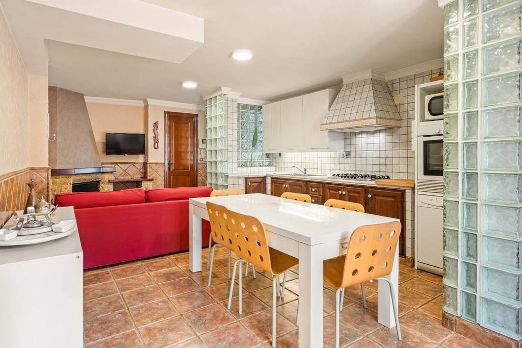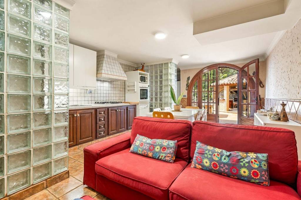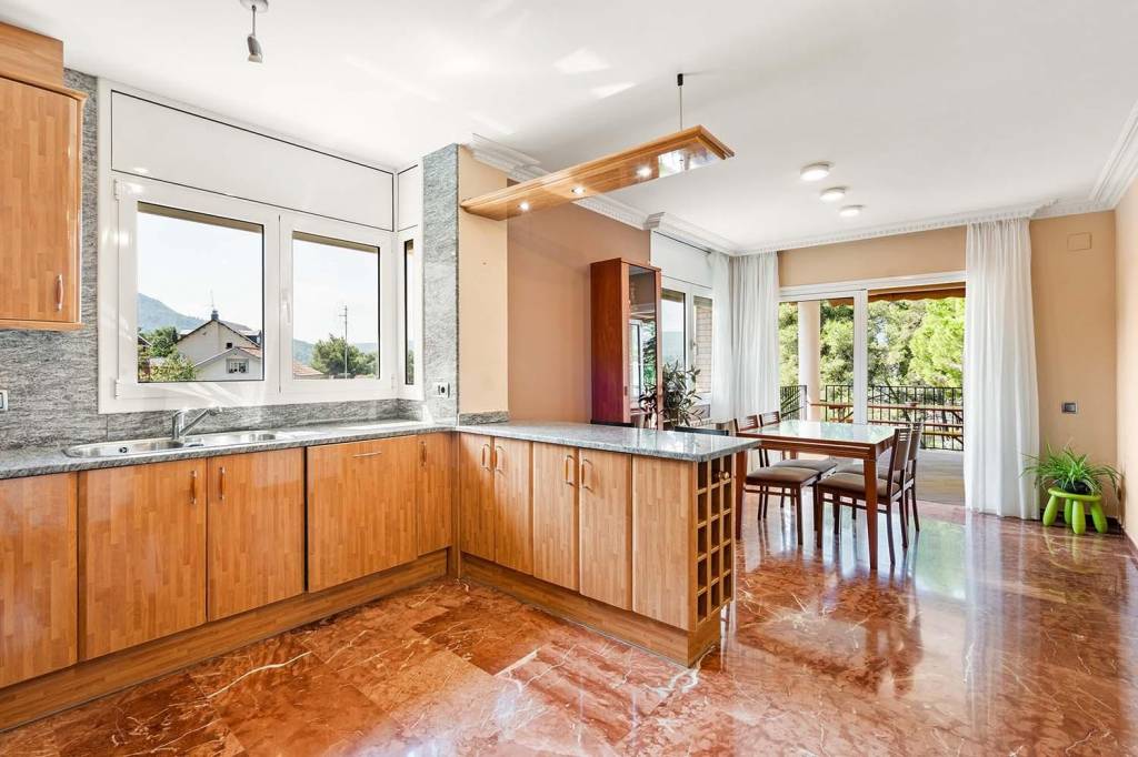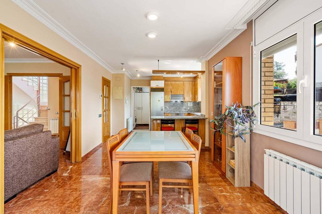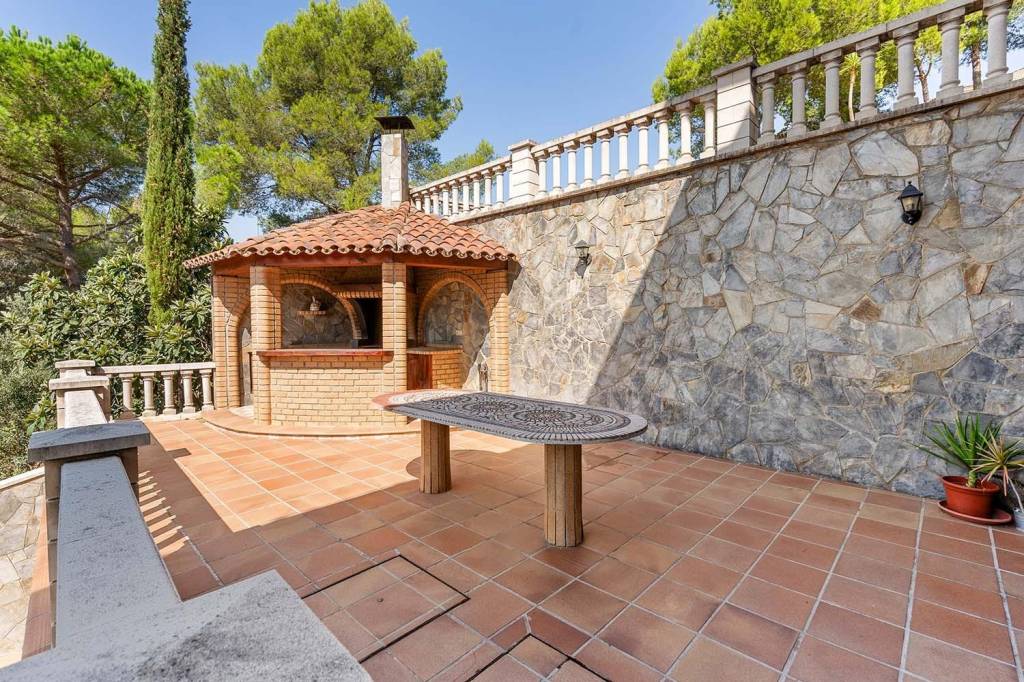 Adicionalmente, en la planta semi-sótano se encuentra una acogedora bodega con chimenea y cocina propia, con salida a la zona de barbacoa y aseo. El garaje de 100 m2 ofrece suficiente espacio para varios vehículos y una amplia y luminosa zona de trabajo.