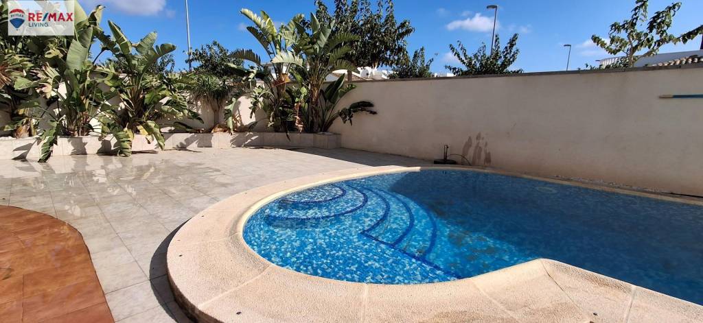 Disfruta de los más de 240 m2 que ofrece su espacio exterior, de su gran jardín privado que rodea toda la vivienda donde hay plantados limoneros, naranjos y olivos, y por supuesto de su espaciosa piscina independiente perfecta para disfrutar en total privacidad de los más de 300 días soleados al año, y diviértete organizando tus barbacoas con amigos y familiares ya que dispone de una bonita parrilla de obra exterior.
