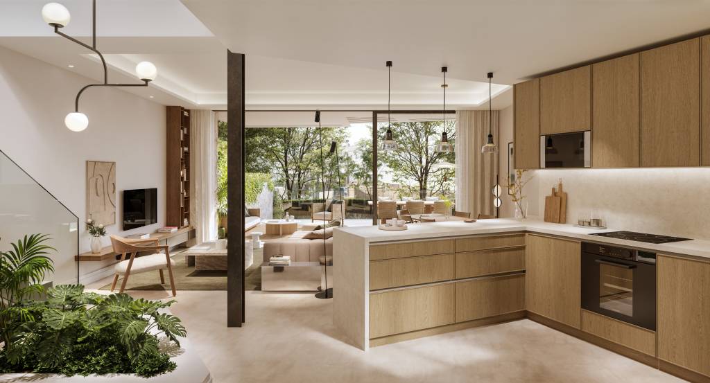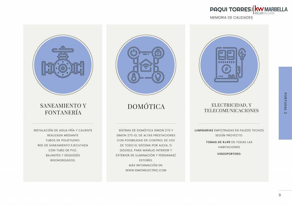 La excelencia se encuentra en cada detalle, con una cuidadosa selección de materiales de las más altas calidades. La vivienda cuenta con revestimientos y sanitarios de la prestigiosa marca Porcelanosa , electrodomésticos Bosch en la cocina y un avanzado sistema de domótica Simon 270 para el control de la iluminación y las persianas, compatible con asistentes de voz.