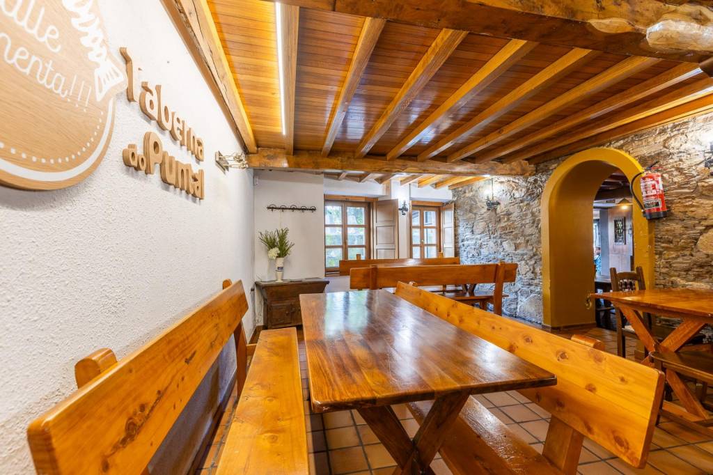 En la planta baja contamos con un restaurante totalmente equipado y listo para empezar a trabajar, con cocina y zona de frios, comedor, terraza exterior y zona de barra o cafetería, lareira y capacidad para 45 comensales, ampliable a 90 en la temporada veraniega sumando la terraza y un almacén en el exterior.