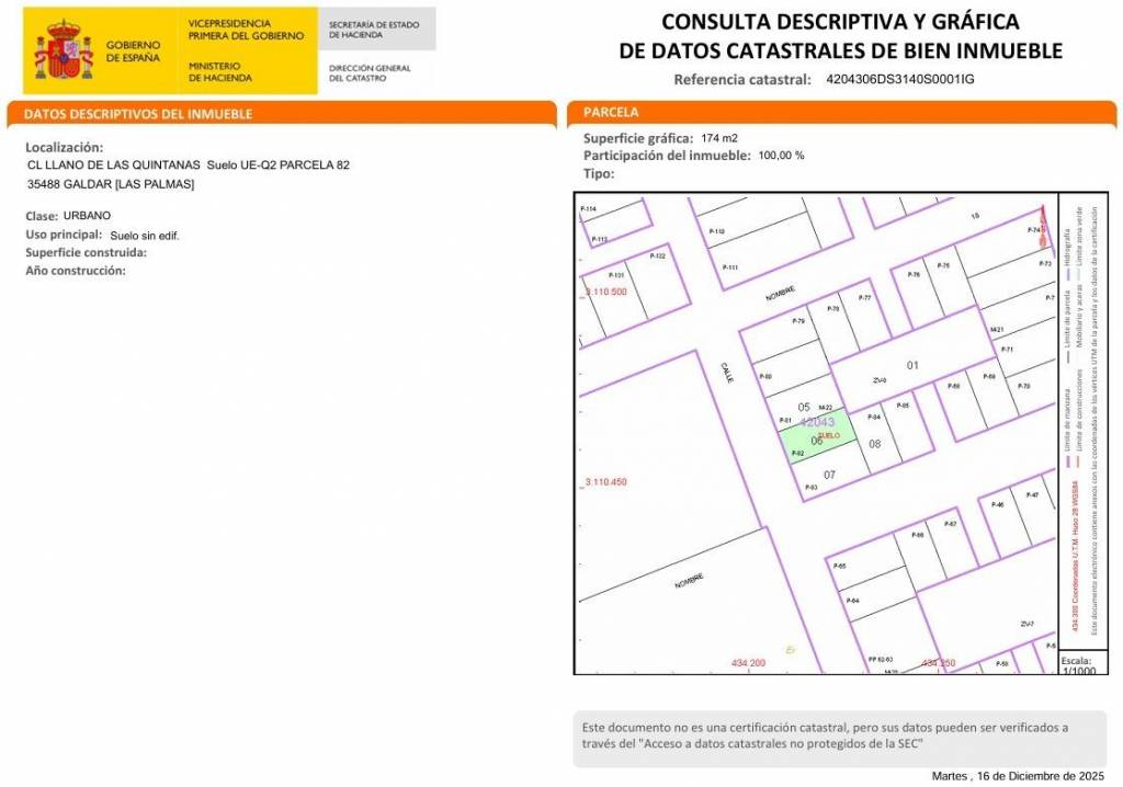 Este solar urbano de 174 m², ubicado en la calle Llanos de Las Quintanas, es la oportunidad perfecta para construir una vivienda cómoda, funcional y bien diseñada en una de las zonas residenciales más demandadas del norte de Gran Canaria.