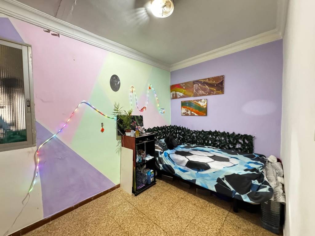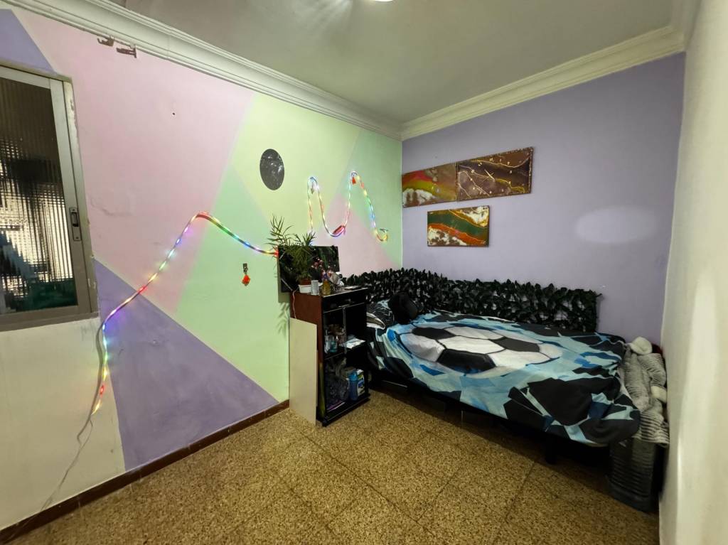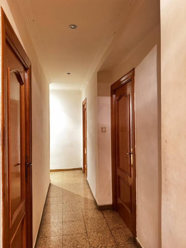El suelo es de terrazo en toda la casa menos en una habitación exterior que tiene suelo laminado. La carpintería de las ventanas es de aluminio. El piso se encuentra para actualizar, lo que te permitiría diseñarlo a tu gusto eligiendo materiales y tu propio estilo. El piso no dispone de garaje pero actualmente se encuentran disponibles varias plazas a escasos metros en la misma calle.