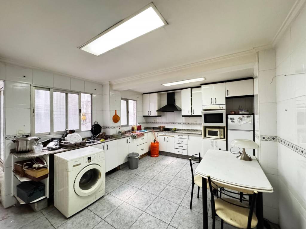 En la entrada del edificio disfrutamos de una reforma nueva con acceso de silla de ruedas y ascensor. Ya en la tercera planta, el recibidor invita a pasar por un pequeño pasillo que tiene acceso a un salón comedor con dos grandes ventanales de vidrio reflectivo, que no permiten ver el interior desde fuera para mayor privacidad, y otro lateral donde se disfruta del sol por las tardes. Adjuntas se encuentran dos habitaciones dobles exteriores con ventana y al lado contrario una habitación con una ventana opaca que da al trastero y cocina. Al girar encontramos la ducha y el aseo completo y para terminar una gran cocina (antes dormitorio y cocina) de unos 16 m2. Finalmente tenemos un tendedero exterior y un trastero amueblado donde se encuentra la caldera eléctrica con un depósito de 80 litros para tener agua caliente para toda la familia.