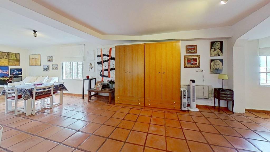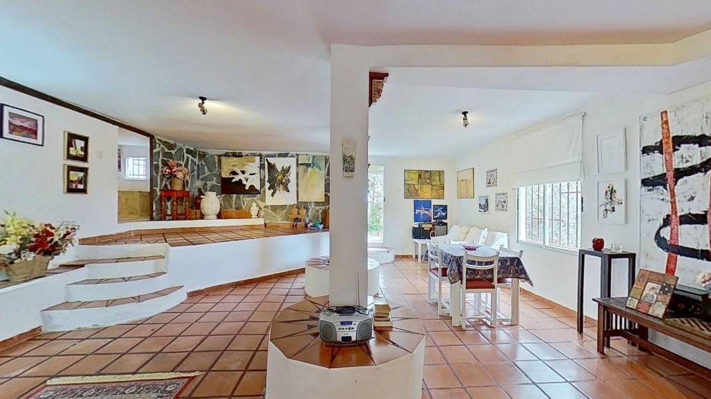 Destaca su impresionante salón diáfano de 125 m² en planta baja, ideal para celebraciones, zona de ocio, segunda vivienda, y un amplio salón comedor en planta principal con chimenea y acceso directo a una terraza que rodea la vivienda. Dispone de 3 habitaciones dobles con armarios empotrados, 2 baños completos (uno en suite), cocina office totalmente equipada, y si quieres una piscina, tienes espacio suficiente para construir la que tú quieras.
