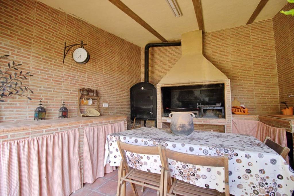 En el exterior tenemos tenemos una amplia barbacoa con despensa y hornos de leña que harán las delicias de la nueva familia que espera habitar esta casa de encanto especial, y con un baño independiente para la zona de la piscina, que tiene un gran tamaño de 60m², con su bomba, depuradora... etc.