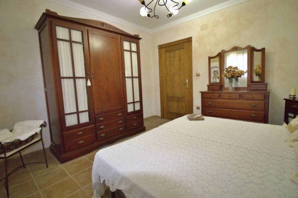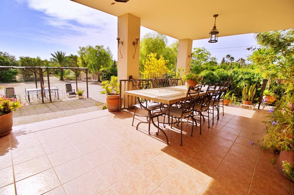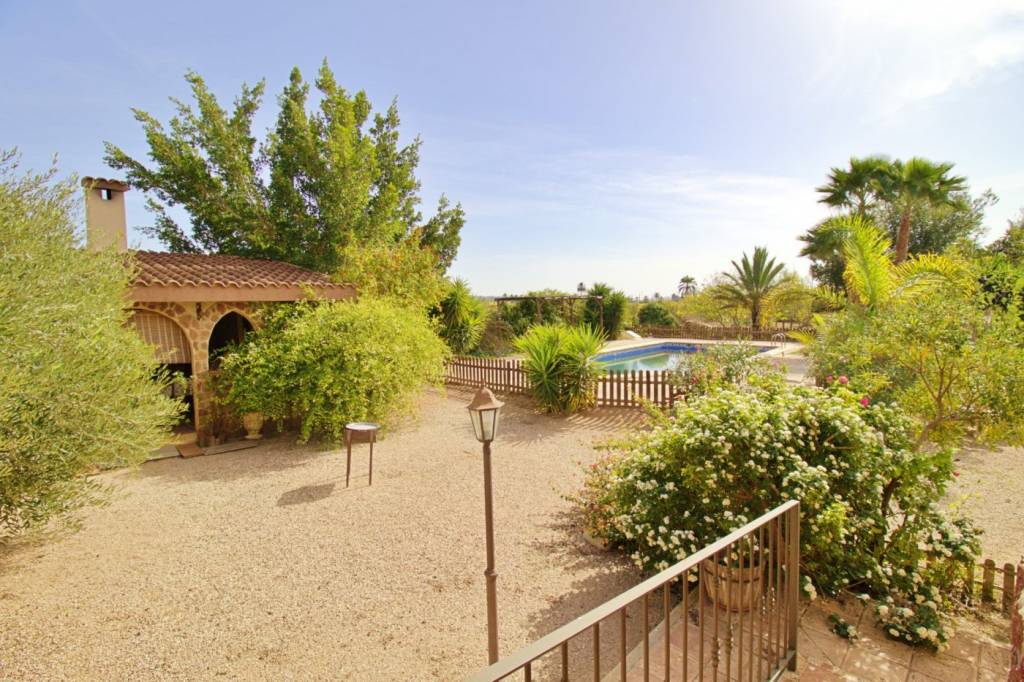 Contamos en la planta baja con una gran cocina con horno de leña, un gran lavadero que es otro dormitorio, un buen baño completo con bañera en esquina, y otros tres amplios dormitorios, uno de ellos con baño en suite y su propio vestidor, también encontramos el acogedor salón con chimenea y su techo abuhardillado de gran altura, comunicado con la planta superior, donde tenemos una sala de estar, abierta y comunicada visualmente con la planta baja, y donde tenemos un baño completo, y dos coquetos y acogedores grandes dormitorios abuhardillados. En esta misma planta tenemos salida a dos terrazas donde disfrutar de las maravillosas vistas al campo y hasta las playas de Santa Pola.