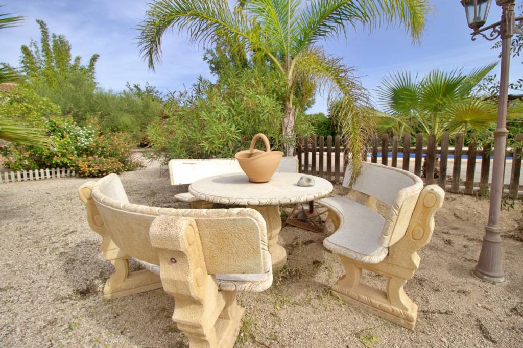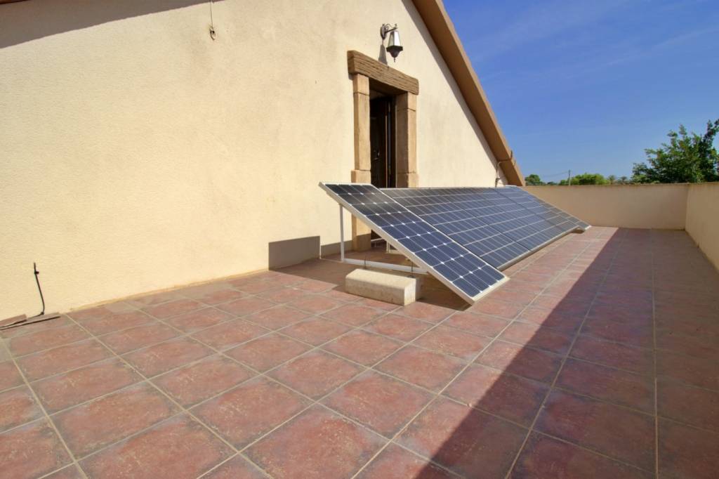 Al fondo tenemos una zona de huerto y frutales para que no te falte de nada, y la parcela esta totalmente vallada, hay un aljibe de 10.000 litros con bomba de riego, agua potable y de riegos de levante, con electricidad trifasica, y ademas dispone de inversor con placas solares y baterías para autoconsumo, para ahorro de factura o trabajar en aislada.