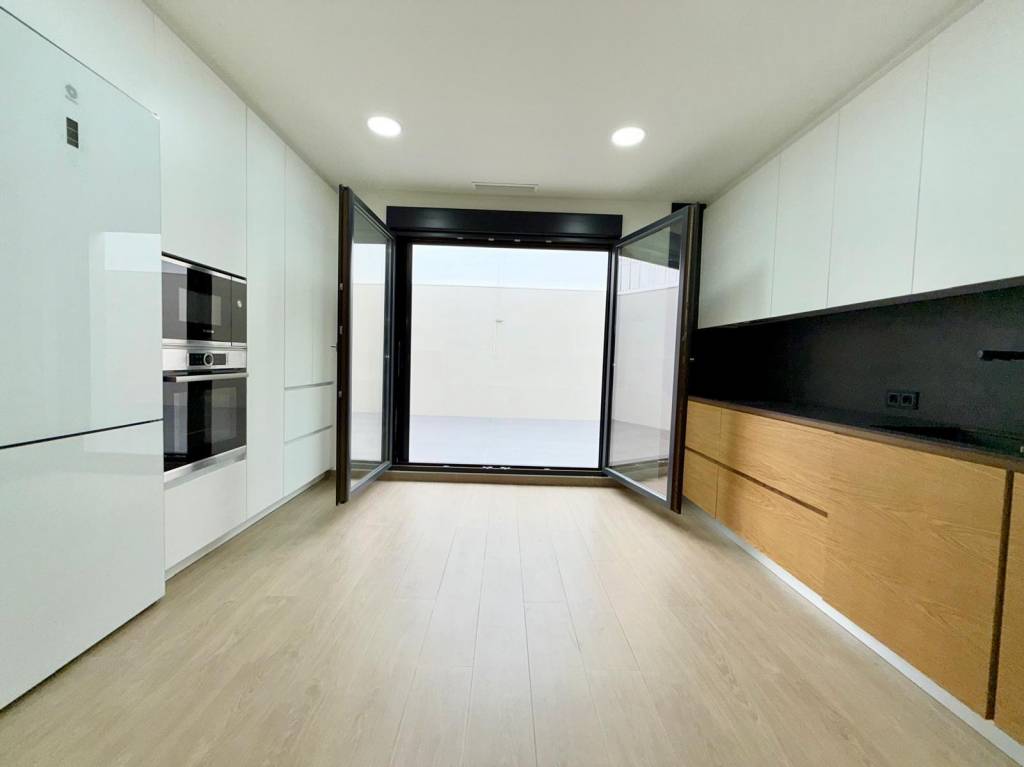 Nada más entrar, el gran salón se convierte en el corazón de la casa: un espacio abierto y elegante donde compartir reuniones familiares o veladas con amigos. La cocina, moderna y con acceso directo al patio, es perfecta para quienes disfrutan cocinando y a la vez quieren mantener la conexión con el exterior. En esta misma planta se encuentra un dormitorio con baño en suite —perfecto para invitados o para quienes valoran la comodidad de tener todo en una sola planta—, además de un aseo de cortesía y un despacho, ideal para teletrabajar sin renunciar al confort del hogar.