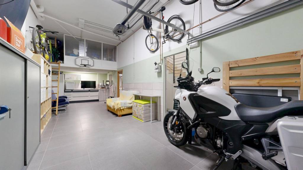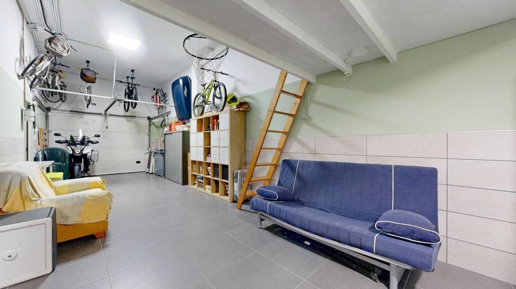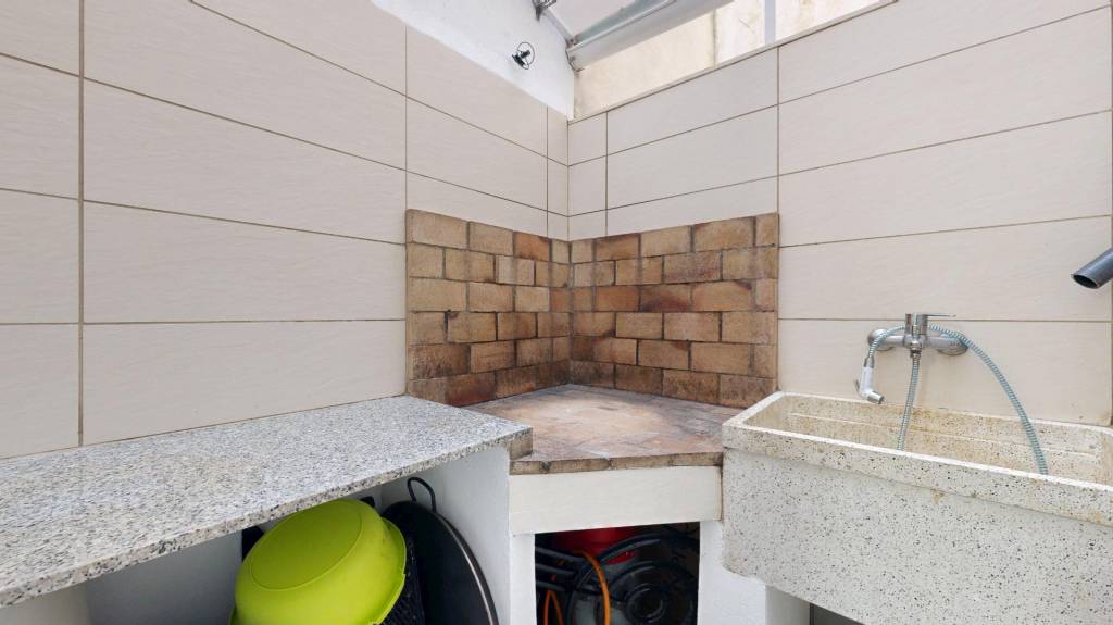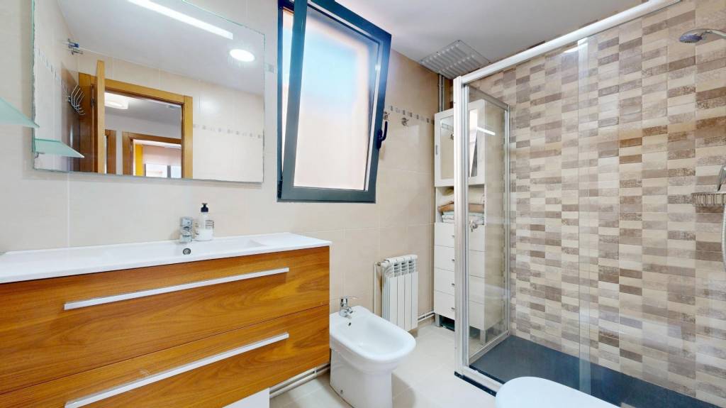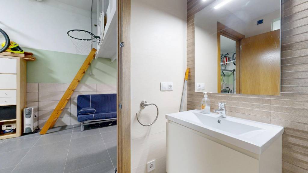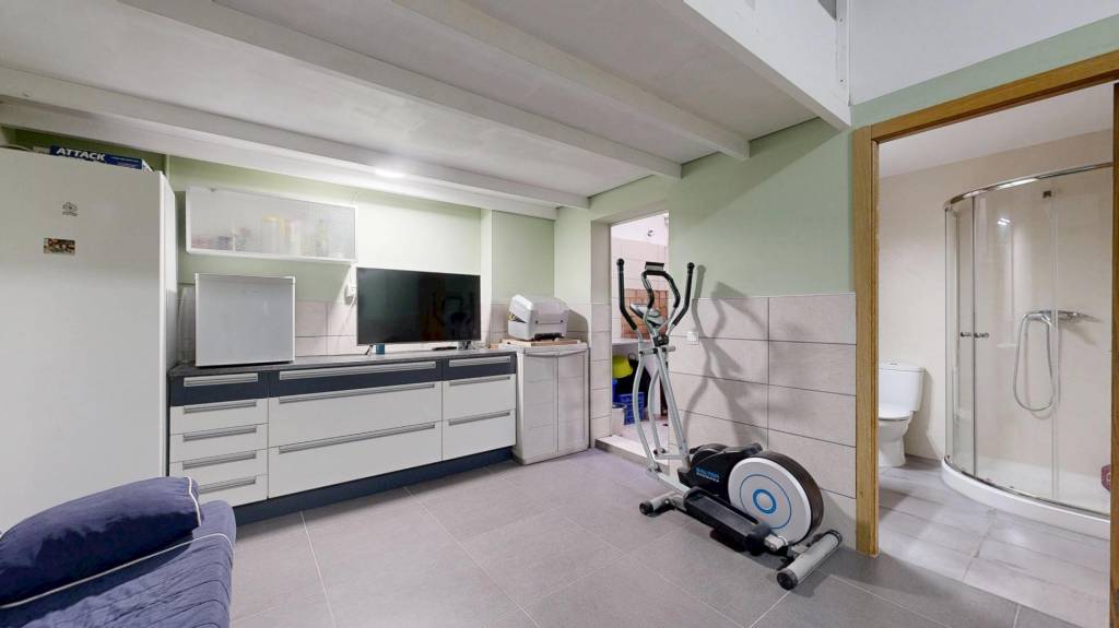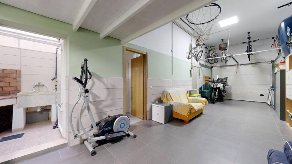 Accedemos al inmueble por puerta principal , con acceso directo al gran garaje , con trastero de gran capacidad , zona de paellero techado y un baño completo provisto de ducha con mampara.