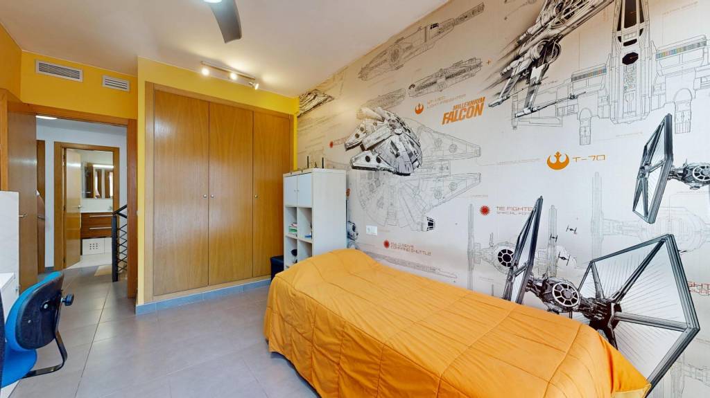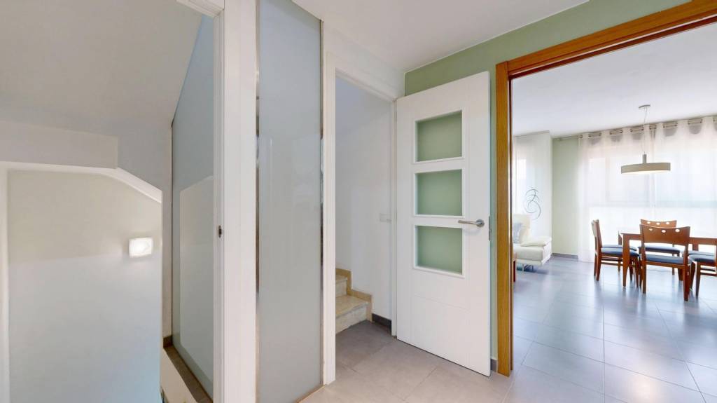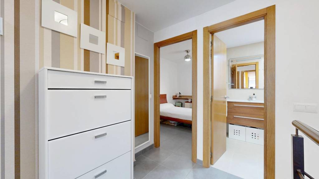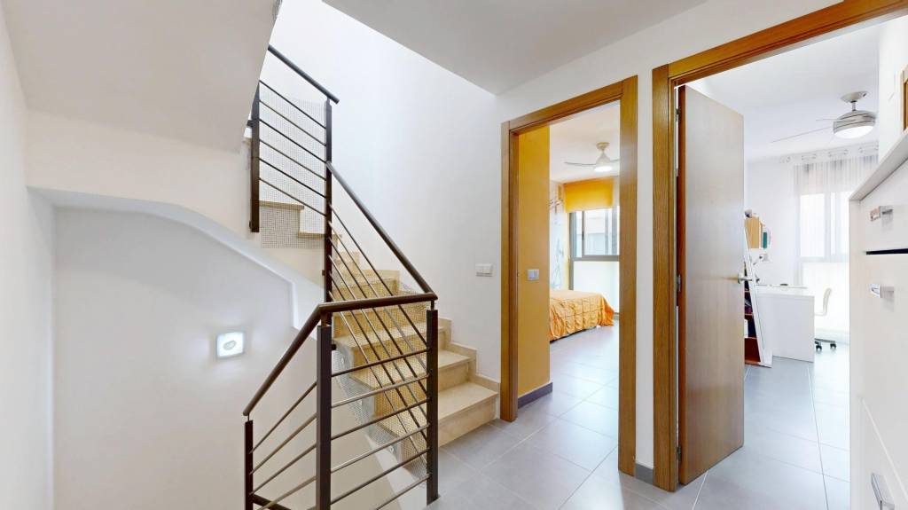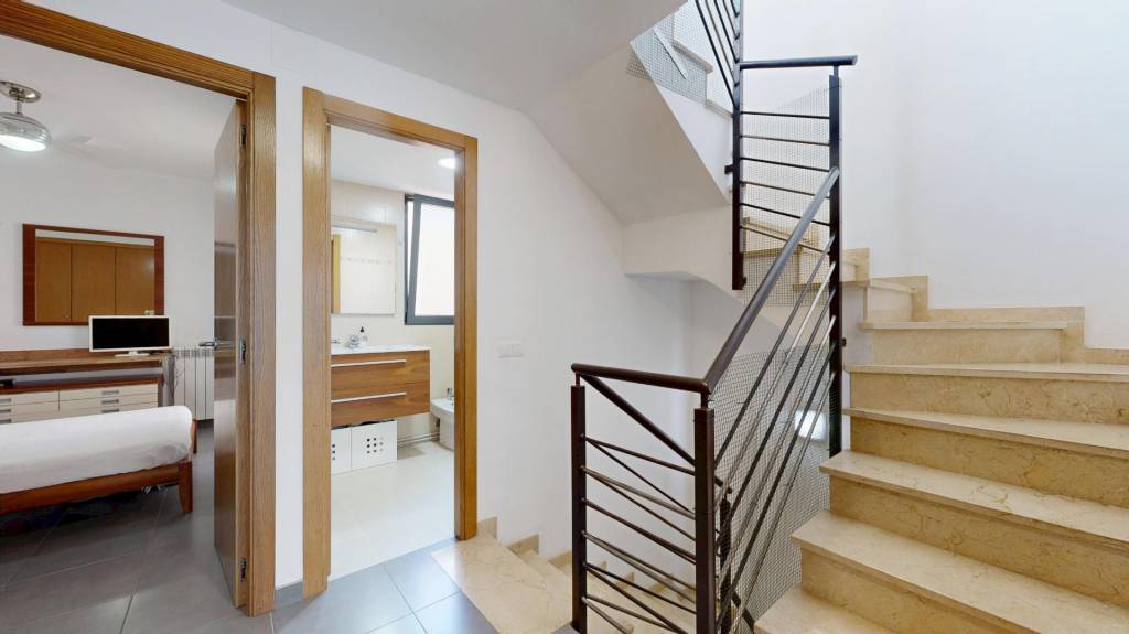 Diferenciadas la zona de día y noche , en la planta superior se encuentran los tres dormitorios dobles , uno de ellos con baño en suitte , y todos con armarios empotrados , a continuación accedemos a la ultima altura , donde se ubican dos terrazas una de ellas también con barbacoa , perfectas dadas su orientación para disfrutar de vista despejadas , y zona de descanso y relax o zona de comedor al aire libre .En esta planta esta la zona de colada , con pila , espacio de almacenaje cómodo y funcional .