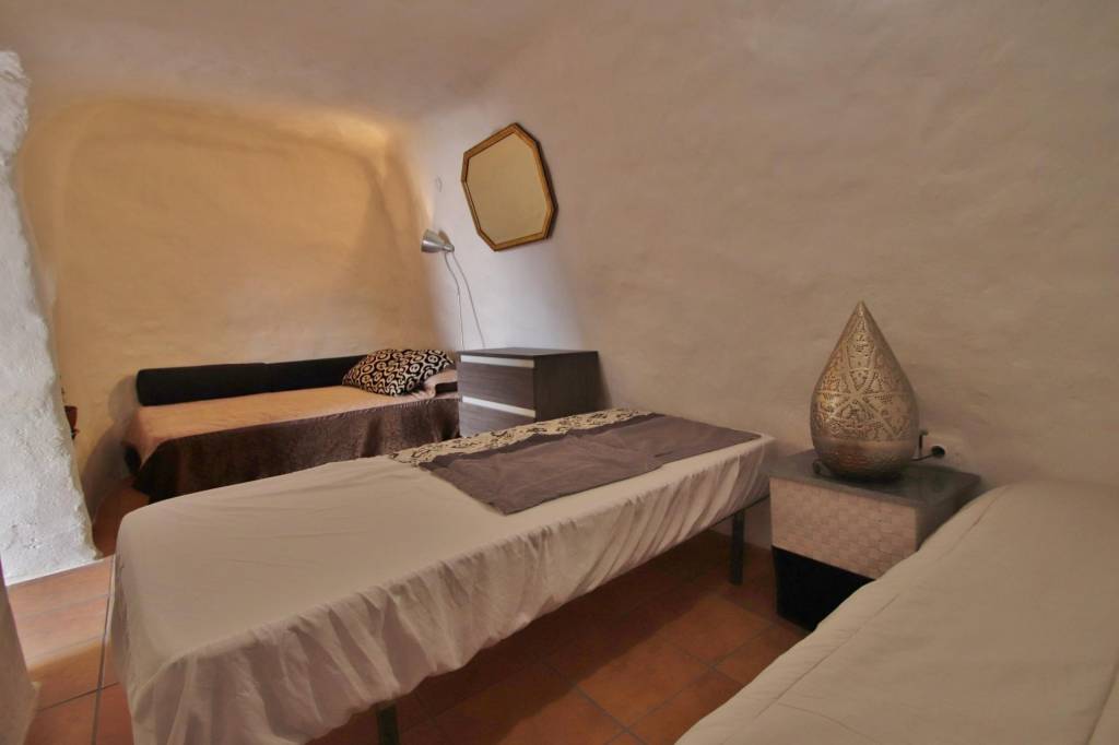 La propiedad también ofrece diversas zonas de almacenaje, lo que te permitirá organizar tus herramientas y pertenencias de manera eficiente. Además, cuenta con una era y una cueva que alberga dos dormitorios, equipados con cocina y baño, brindando comodidad y privacidad para tus invitados o para disfrutar de un espacio adicional.