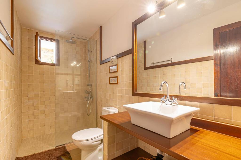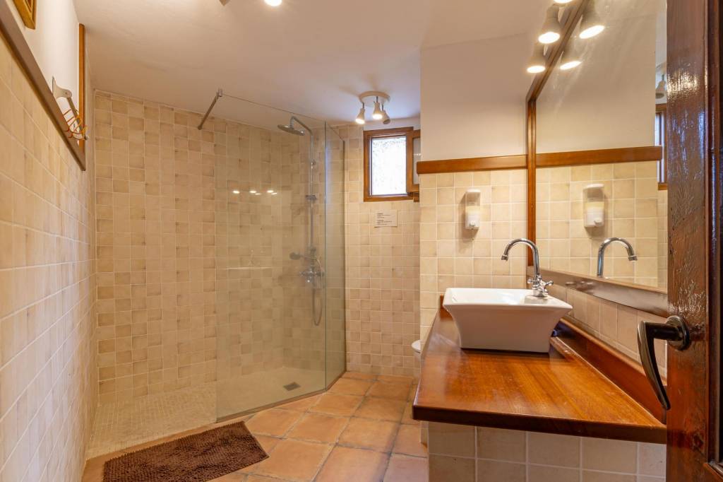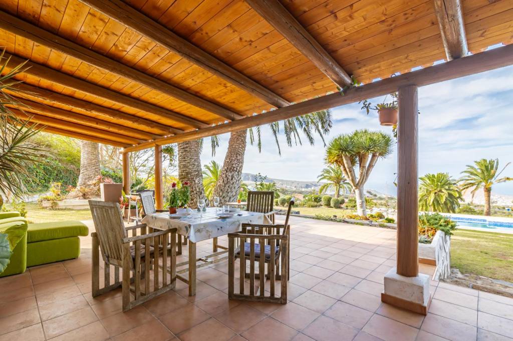 Tiene más de 210 m² construidos y se distribuye en un gran salón con cocina integrada y chimenea, dos dormitorios con salida directa a un porche encantador, dos baños completos y una conexión directa con el jardín y la piscina.