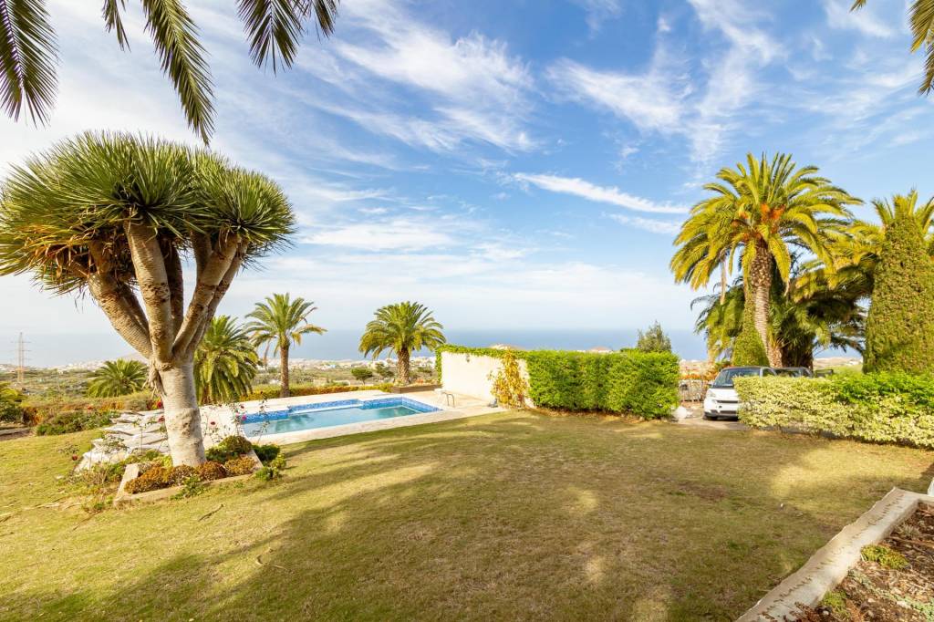 Zona ajardinada, piscina, porche, pista deportiva, y terreno agrícola para cultivar tu propio huerto o desarrollar un proyecto sostenible.