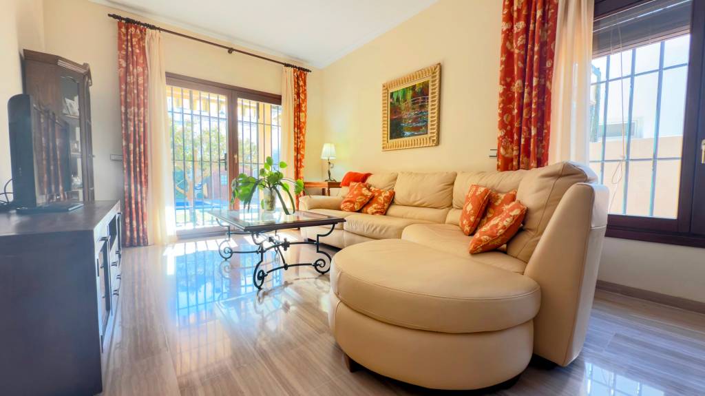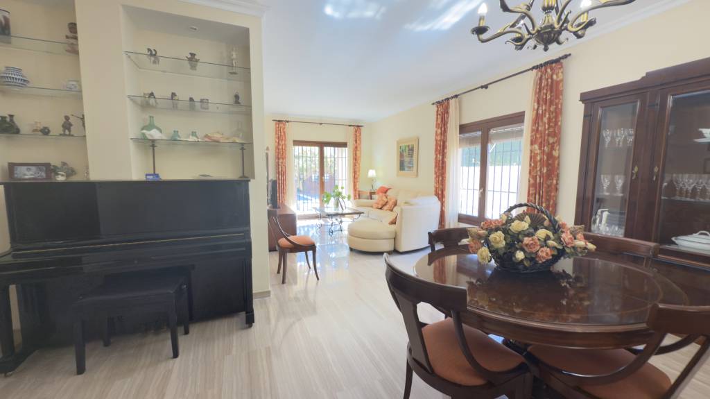 . Salon comedor : un espacioso salón con TV y área de descanso que tiene acceso directo al jardin y piscina