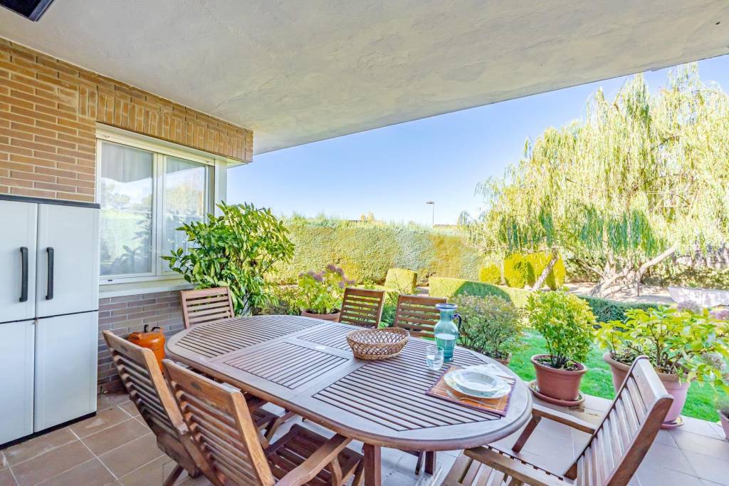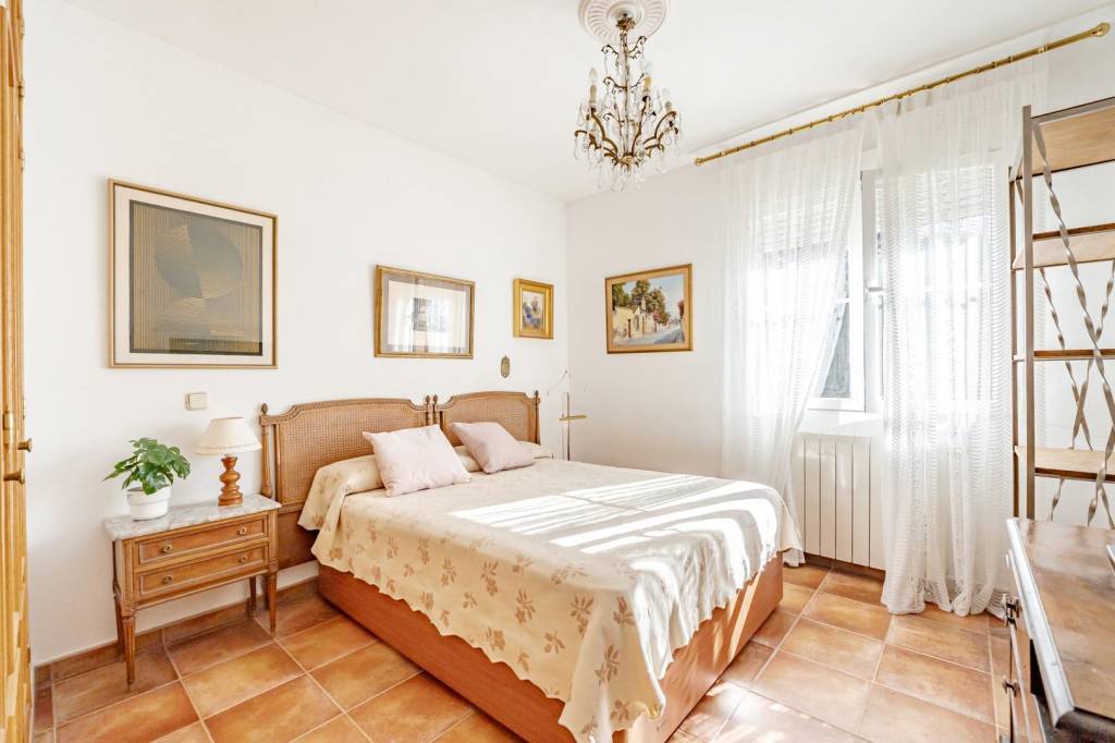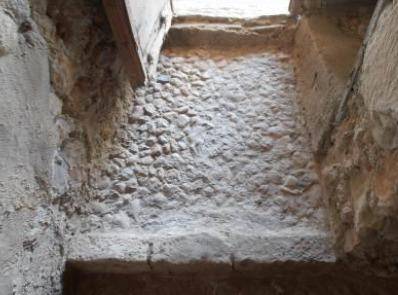 Frente al patio del pasillo de planta baja dispone de una escalera secundaria que da acceso a una estancia superior independiente de la planta primera de la escalera principal.