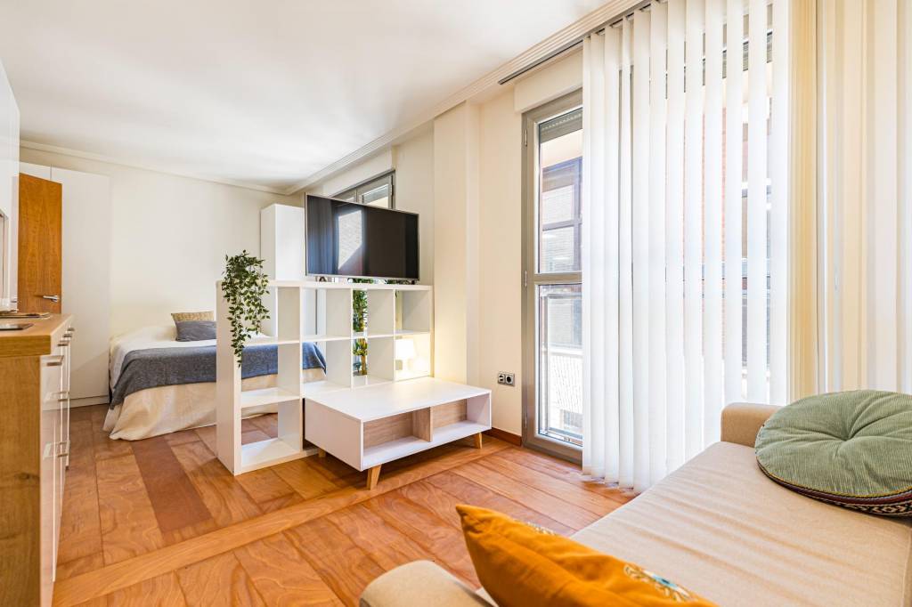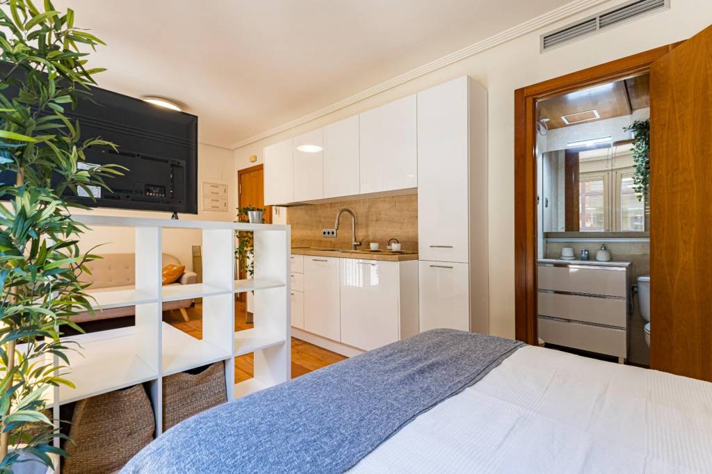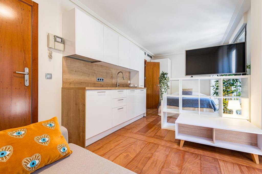 La oficina cuenta con una distribución abierta que incluye un acogedor salón, una cocina completamente equipada, una cómoda cama con dos armarios y un baño completo con pie de ducha. Todo el espacio está pensado para ofrecerte confort y funcionalidad.