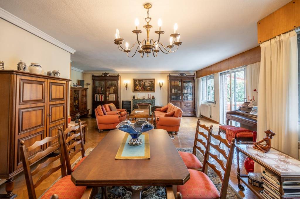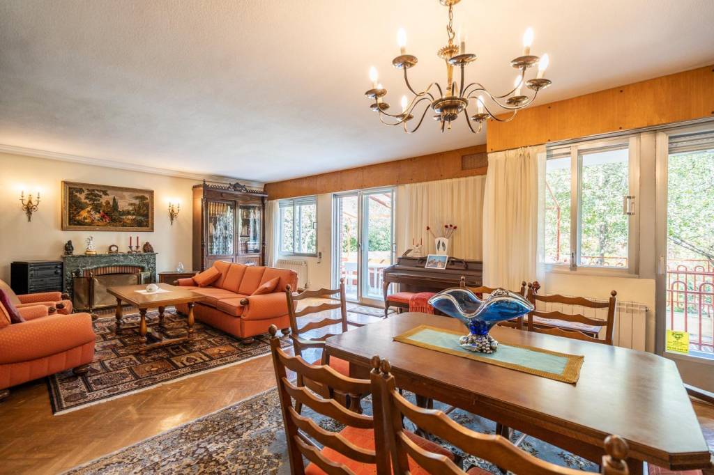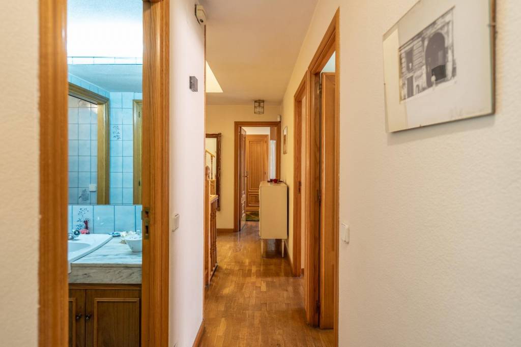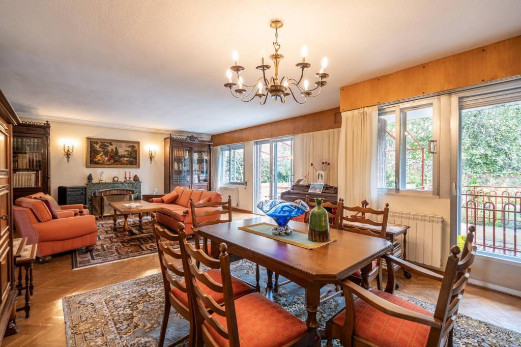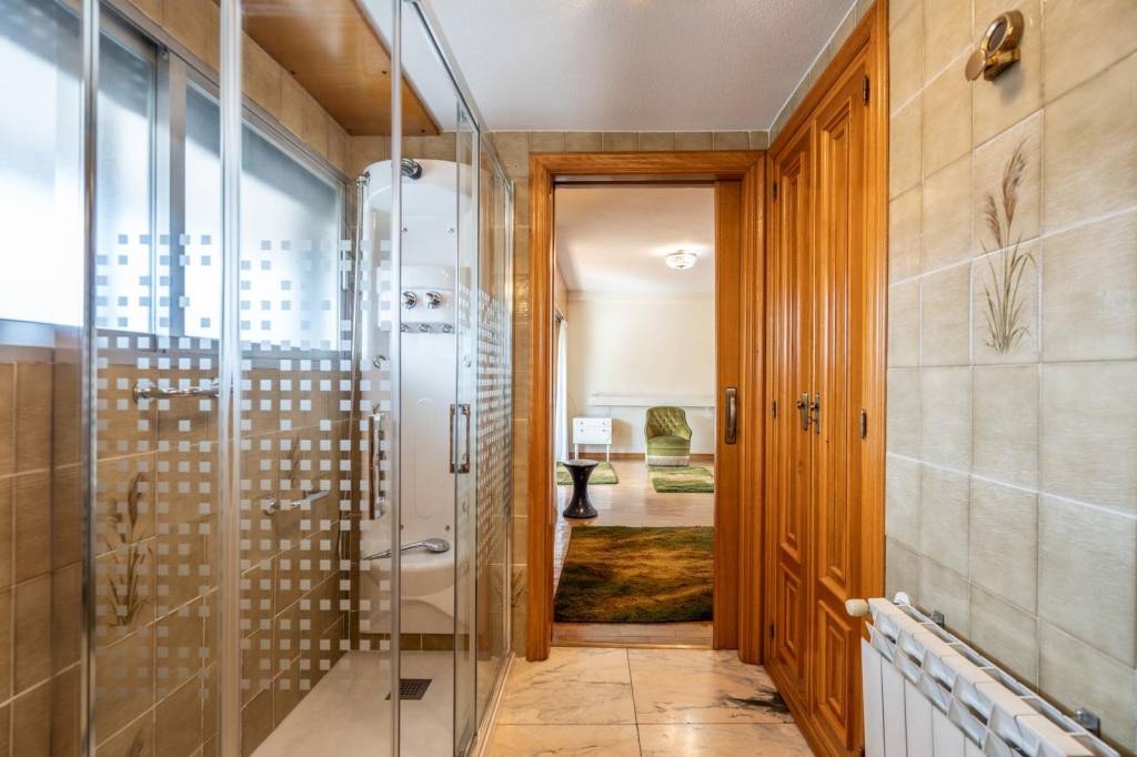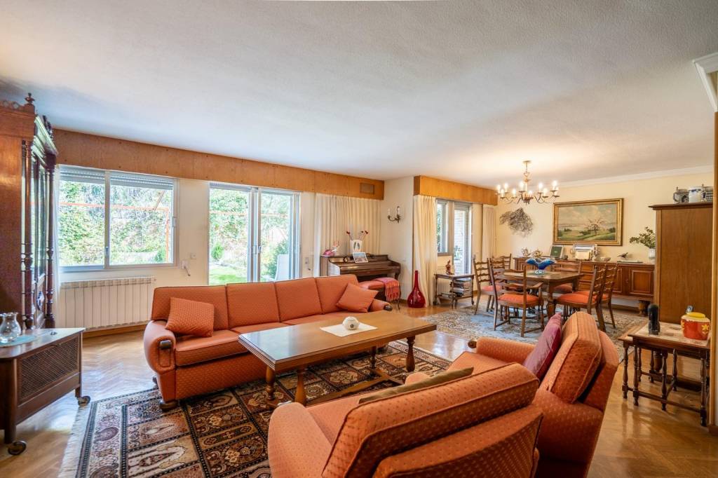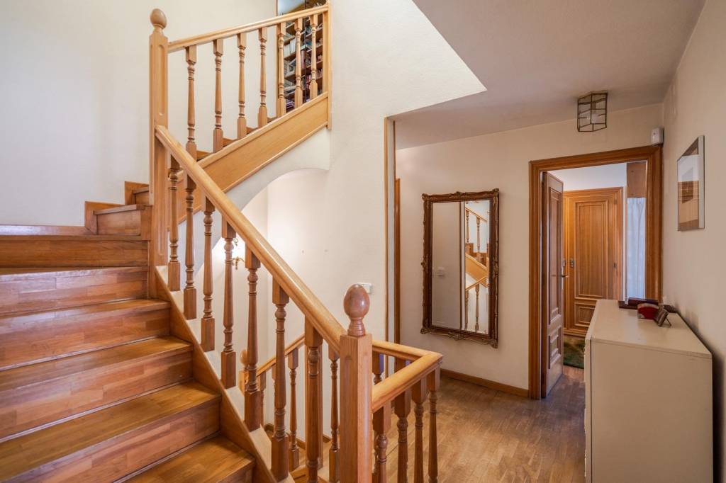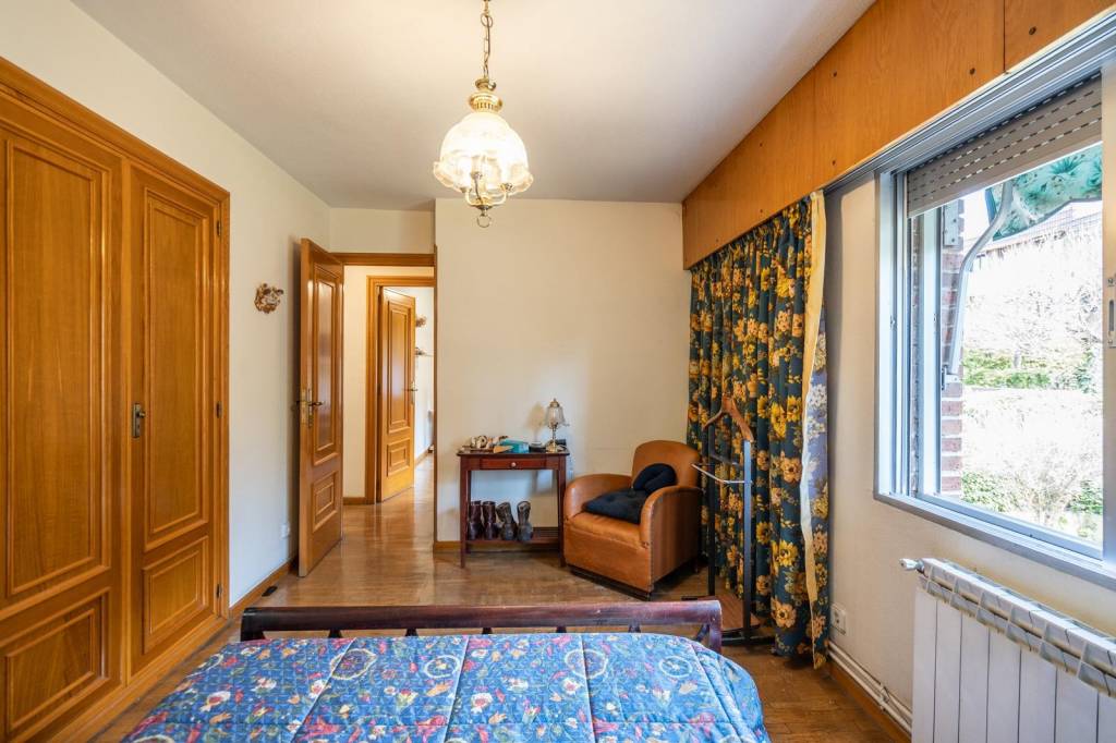 Desde la entrada accedemos a un amplio y elegante vestíbulo que marca el carácter señorial de la vivienda. A continuación, encontramos un espacioso salón-comedor con chimenea, muy luminoso gracias a su orientación y con salida directa a una agradable terraza y al jardín privado.